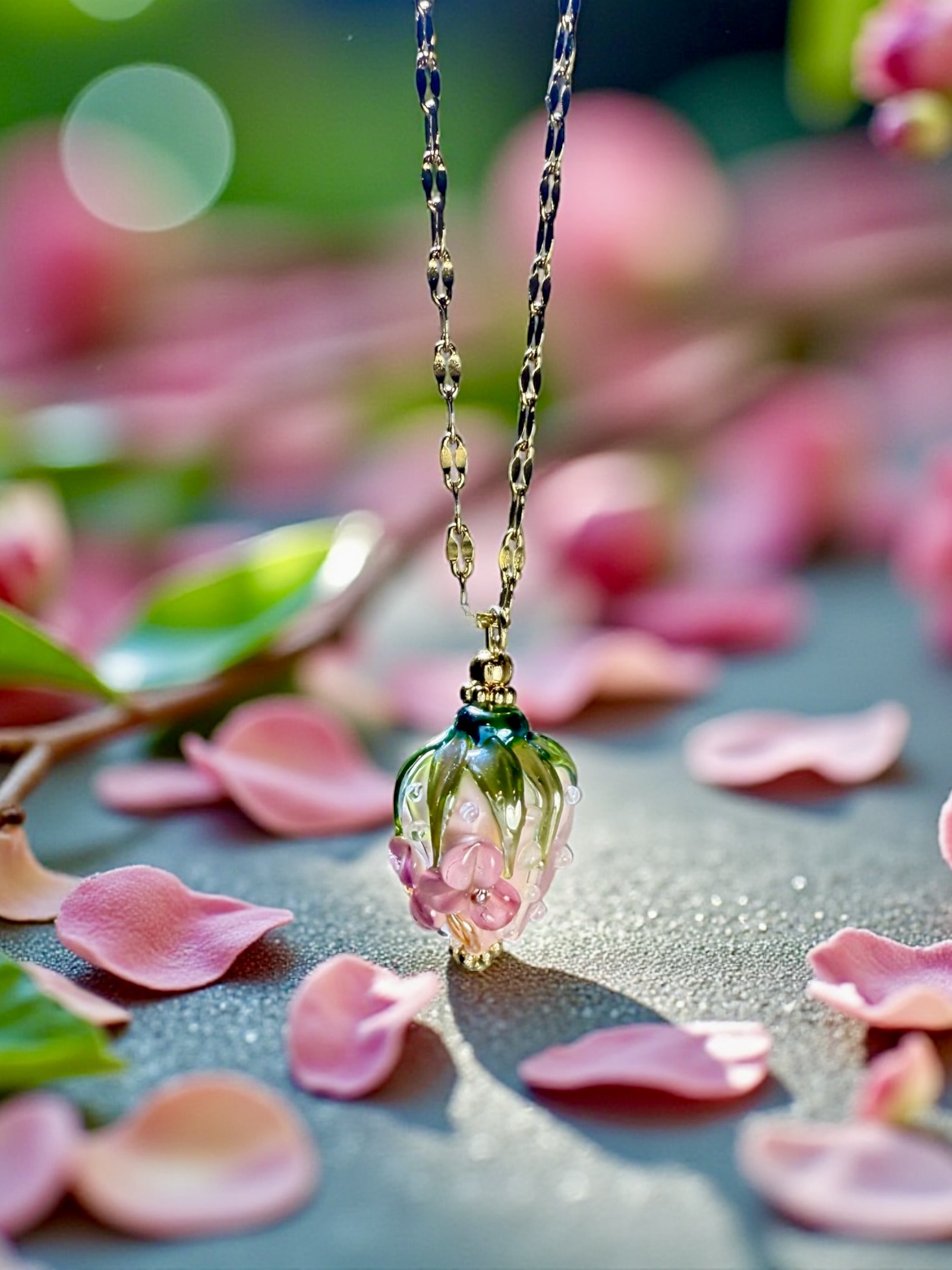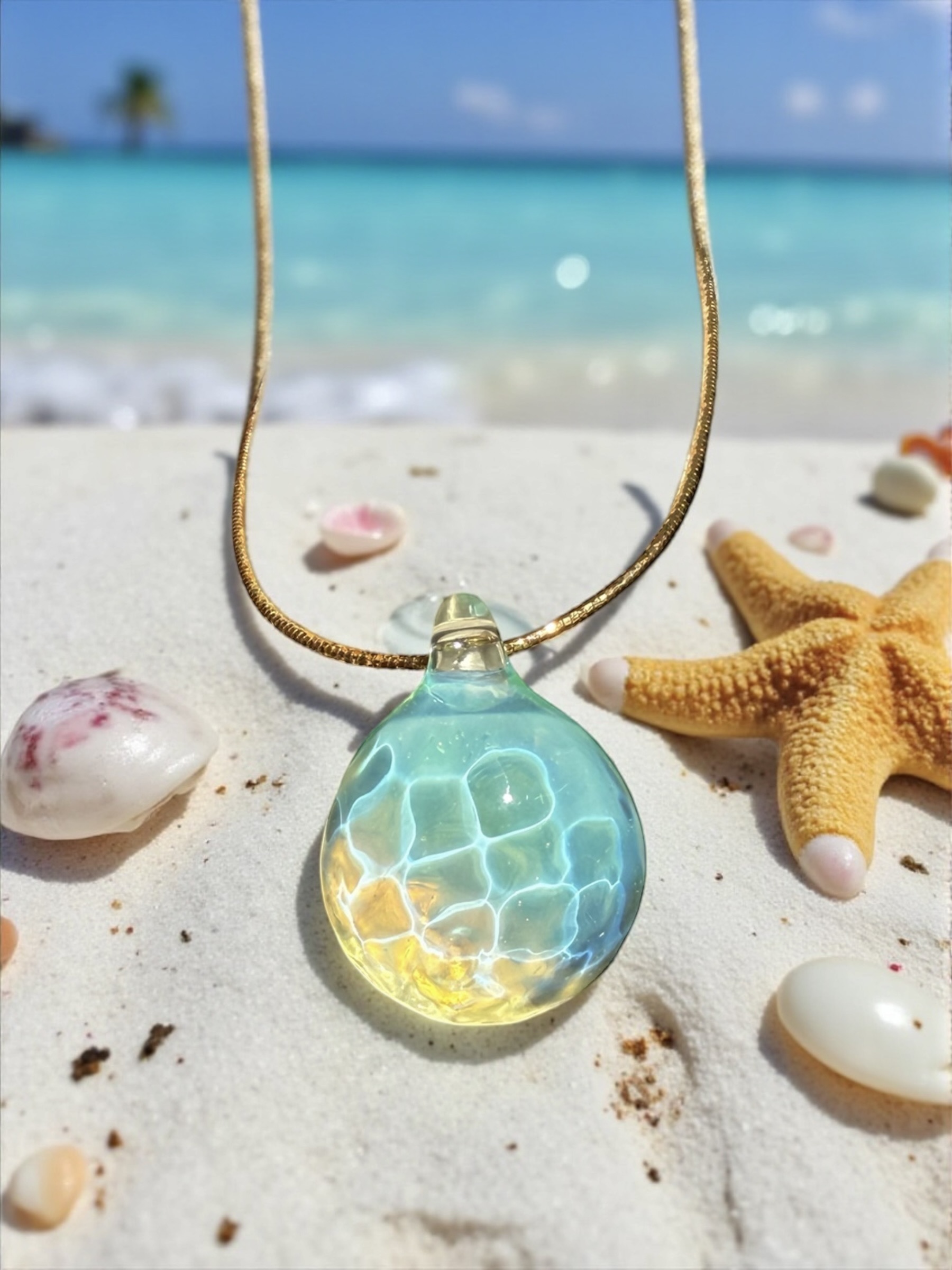 Limitowany Naszyjnik Światło Oceanu, szkło artystyczne Lampwork 3 cm | Gold Filled 14K Premium