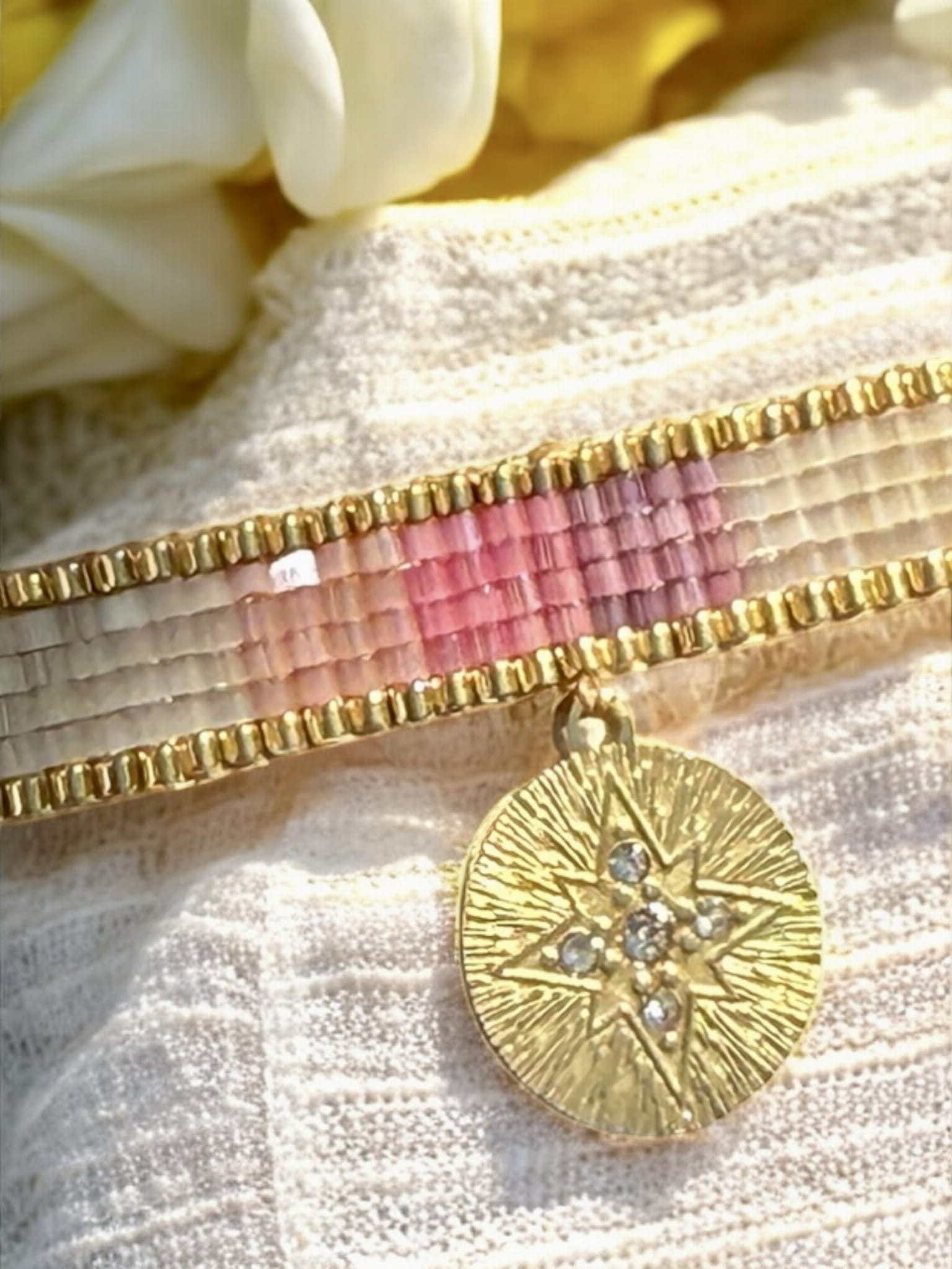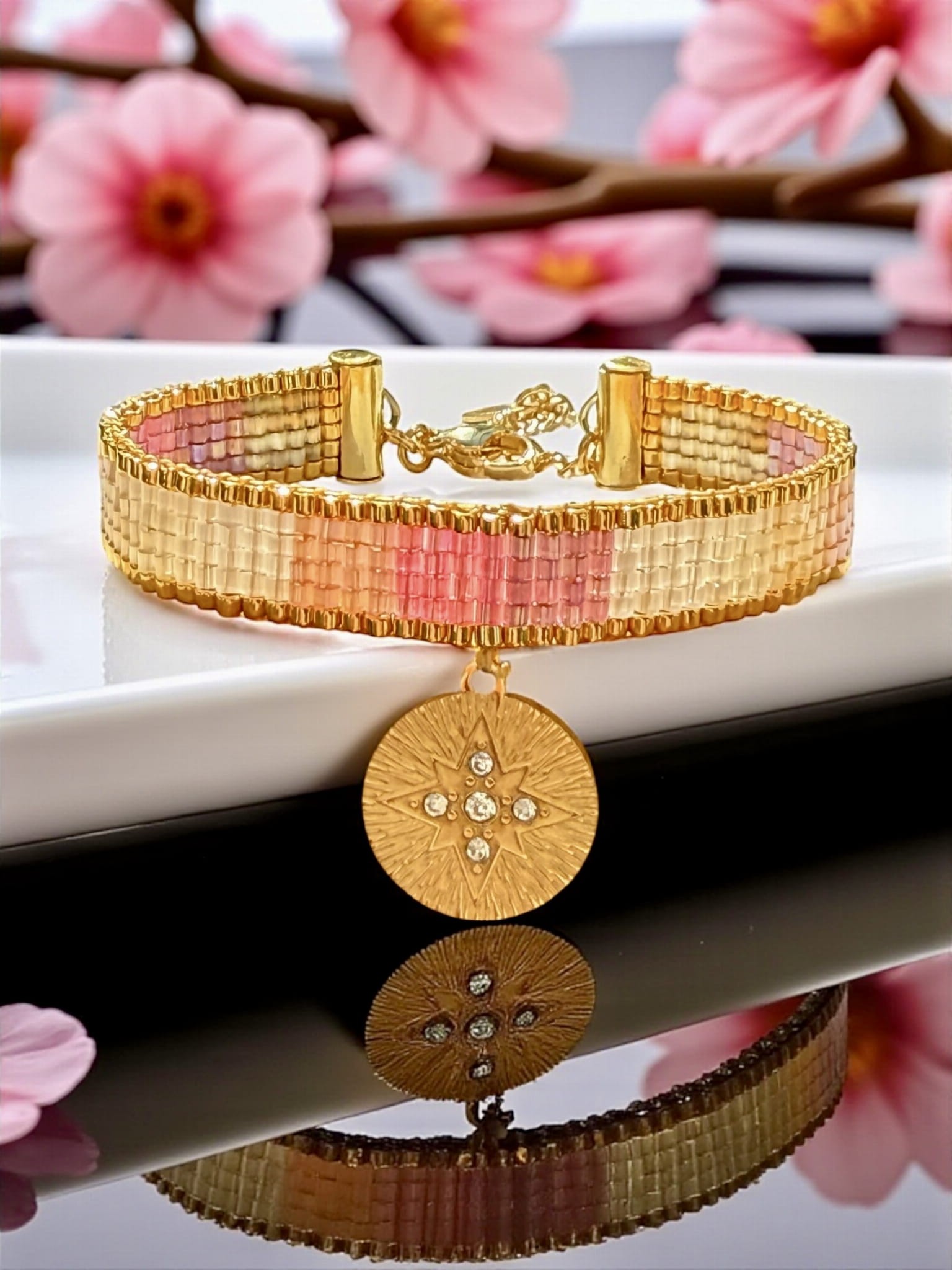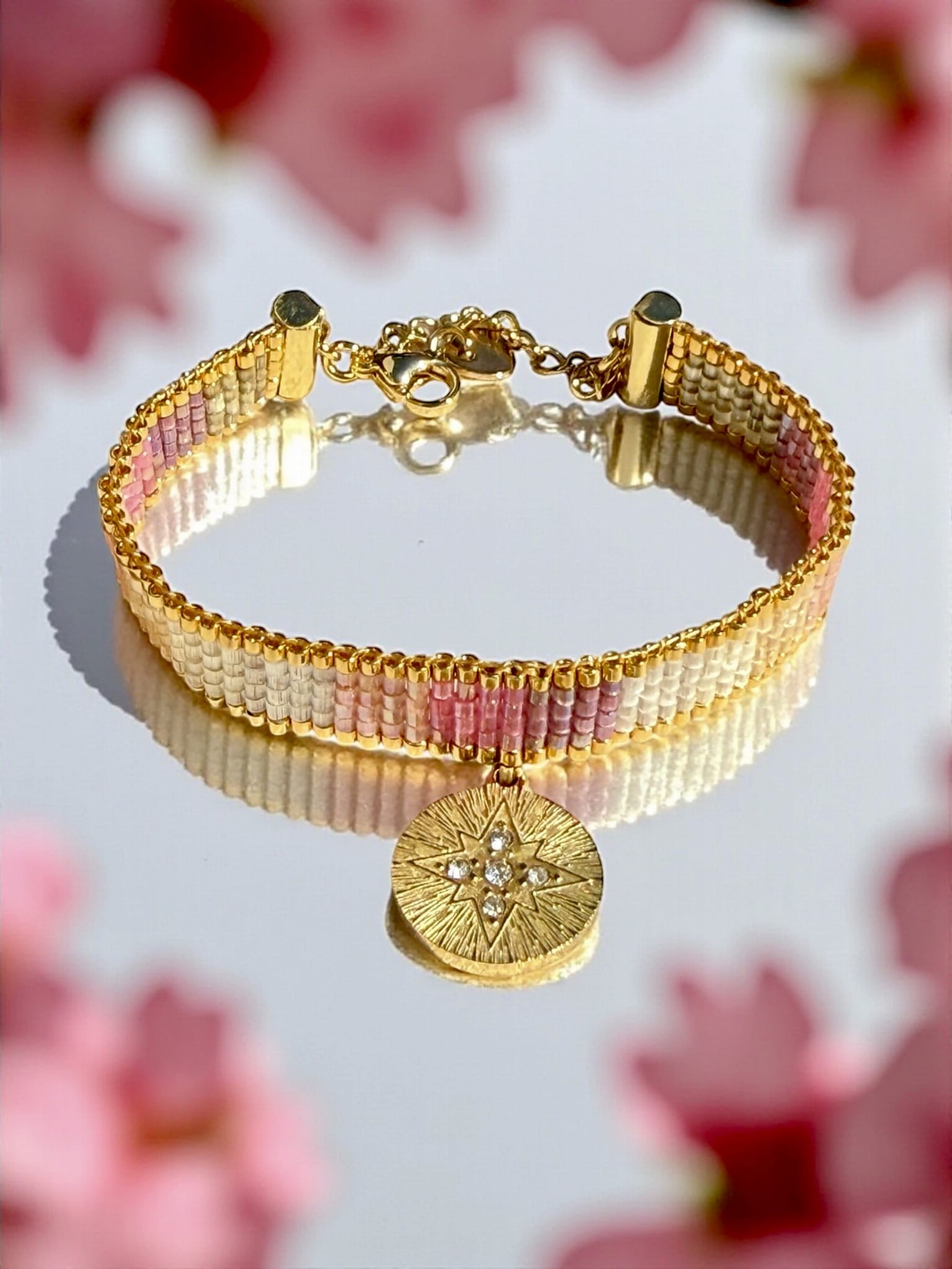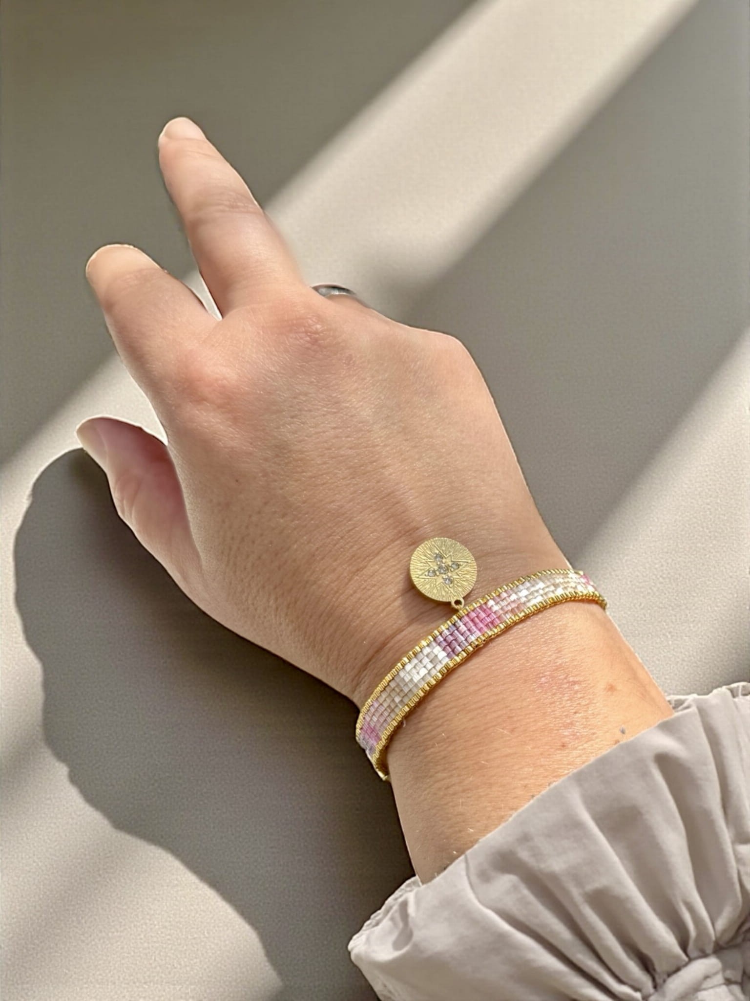 Bransoletka Tkana z Gwiazdą | ręcznie wykonana | ombre z koralików Miyuki, odcienie różu