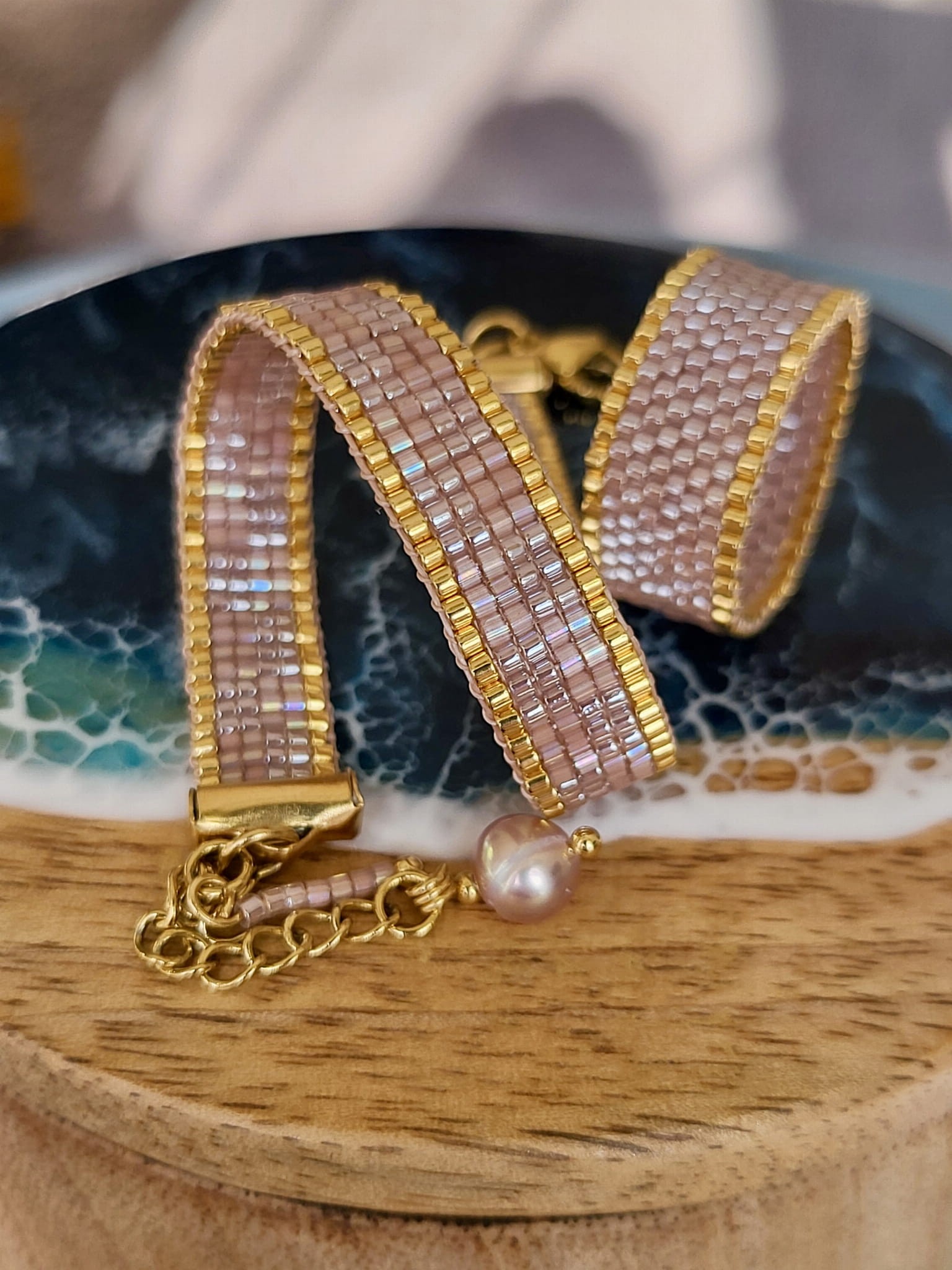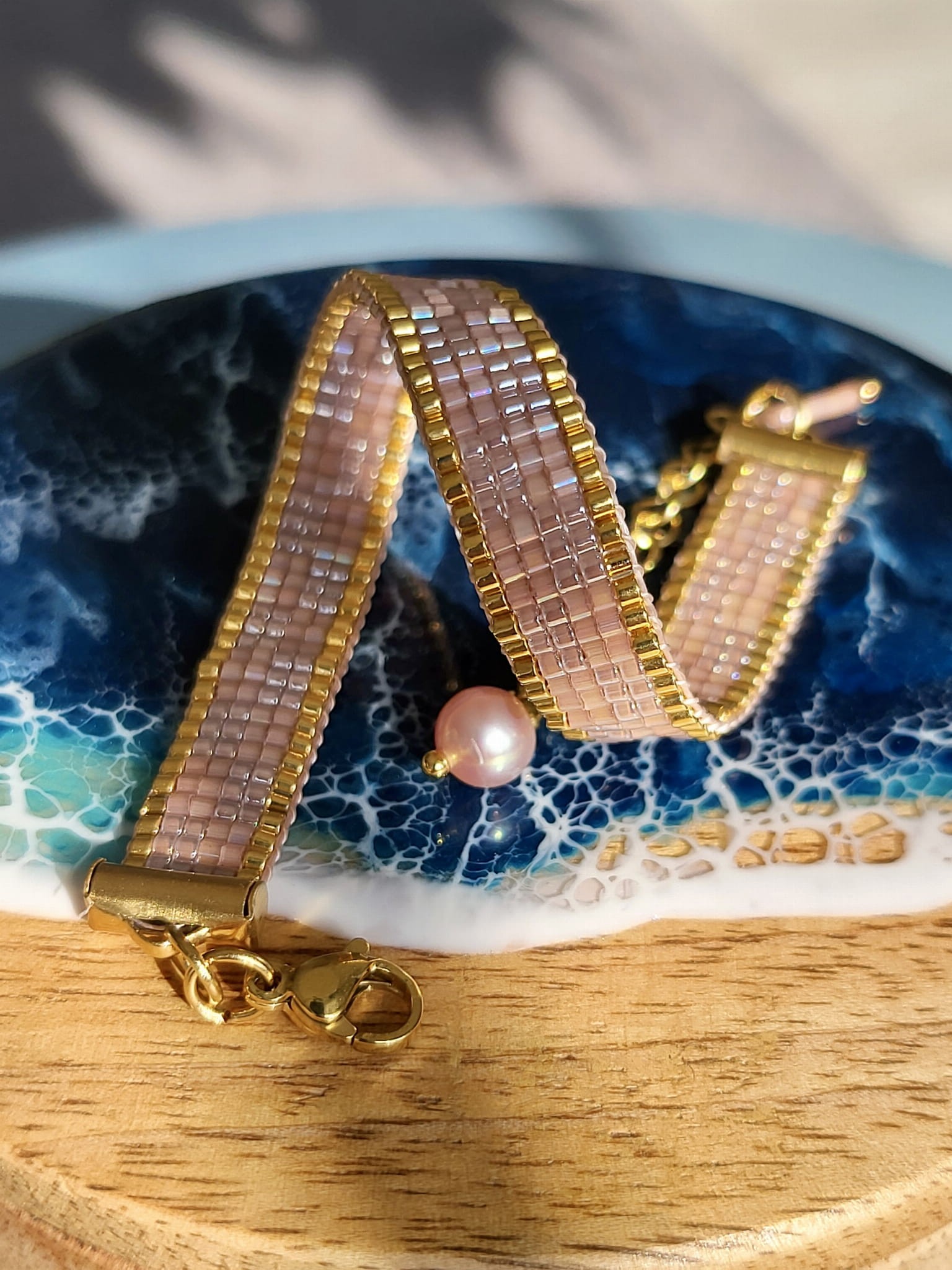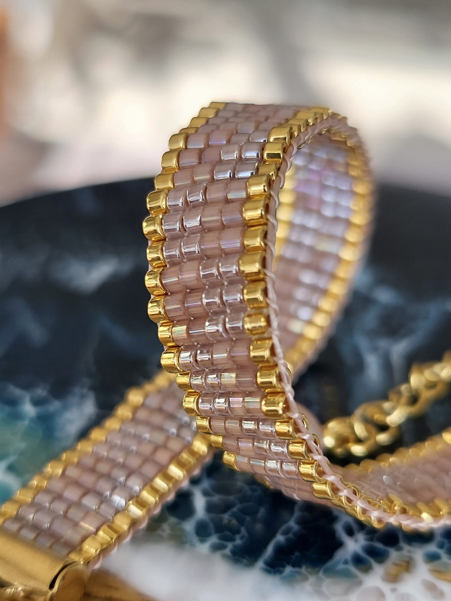 Bransoletka tkana beżowa ze złotym akcentem Piasek Pustyni