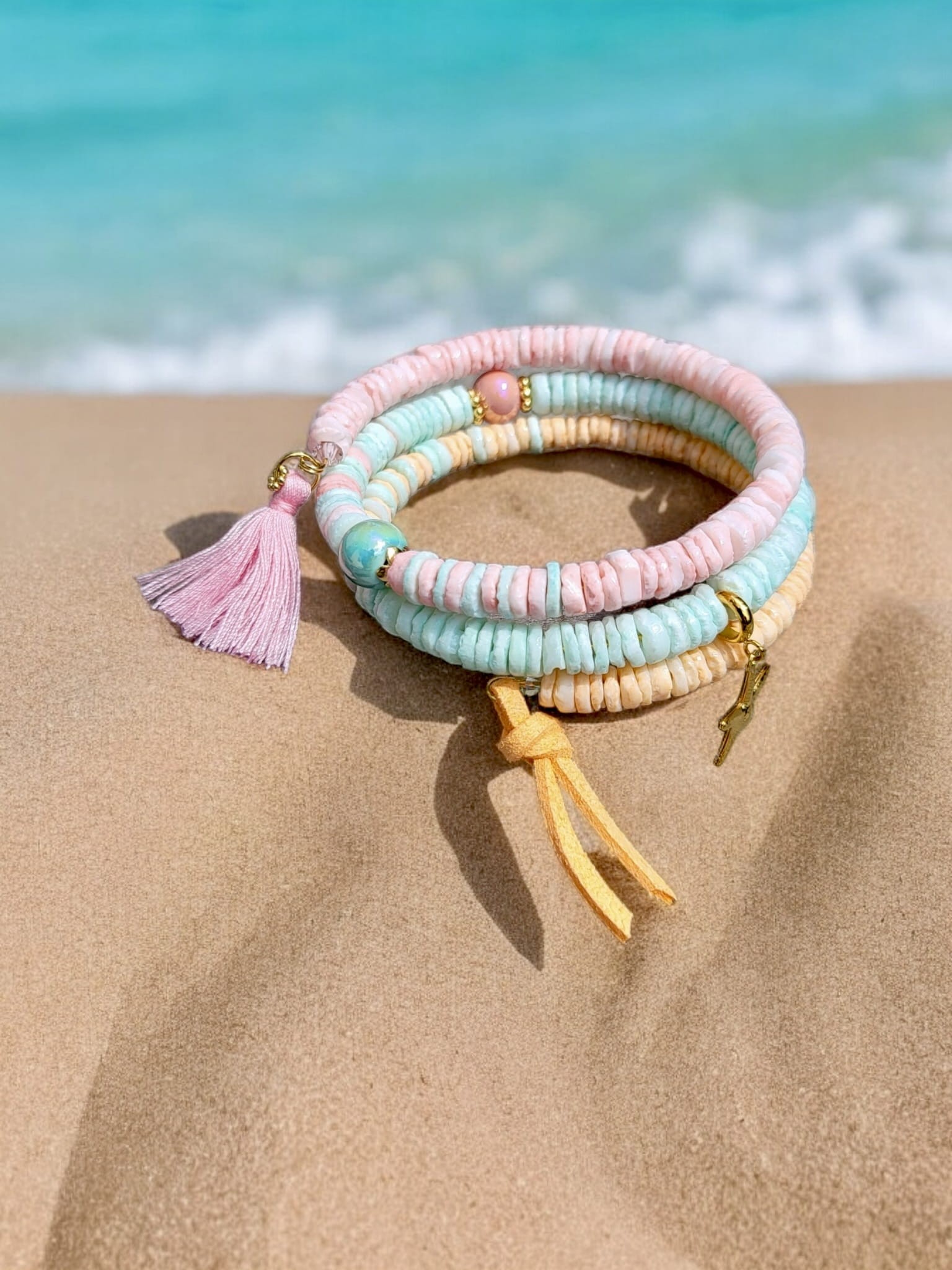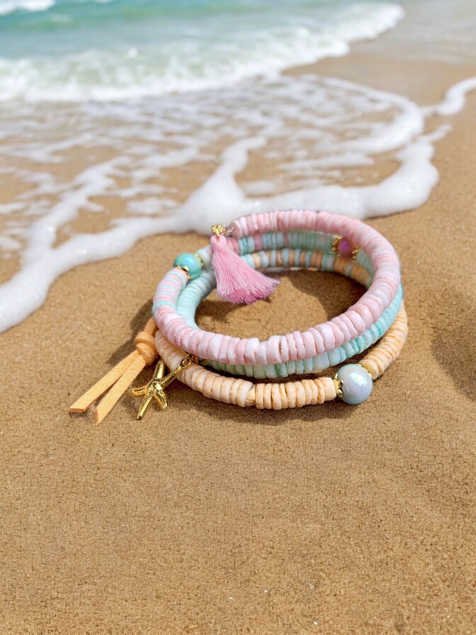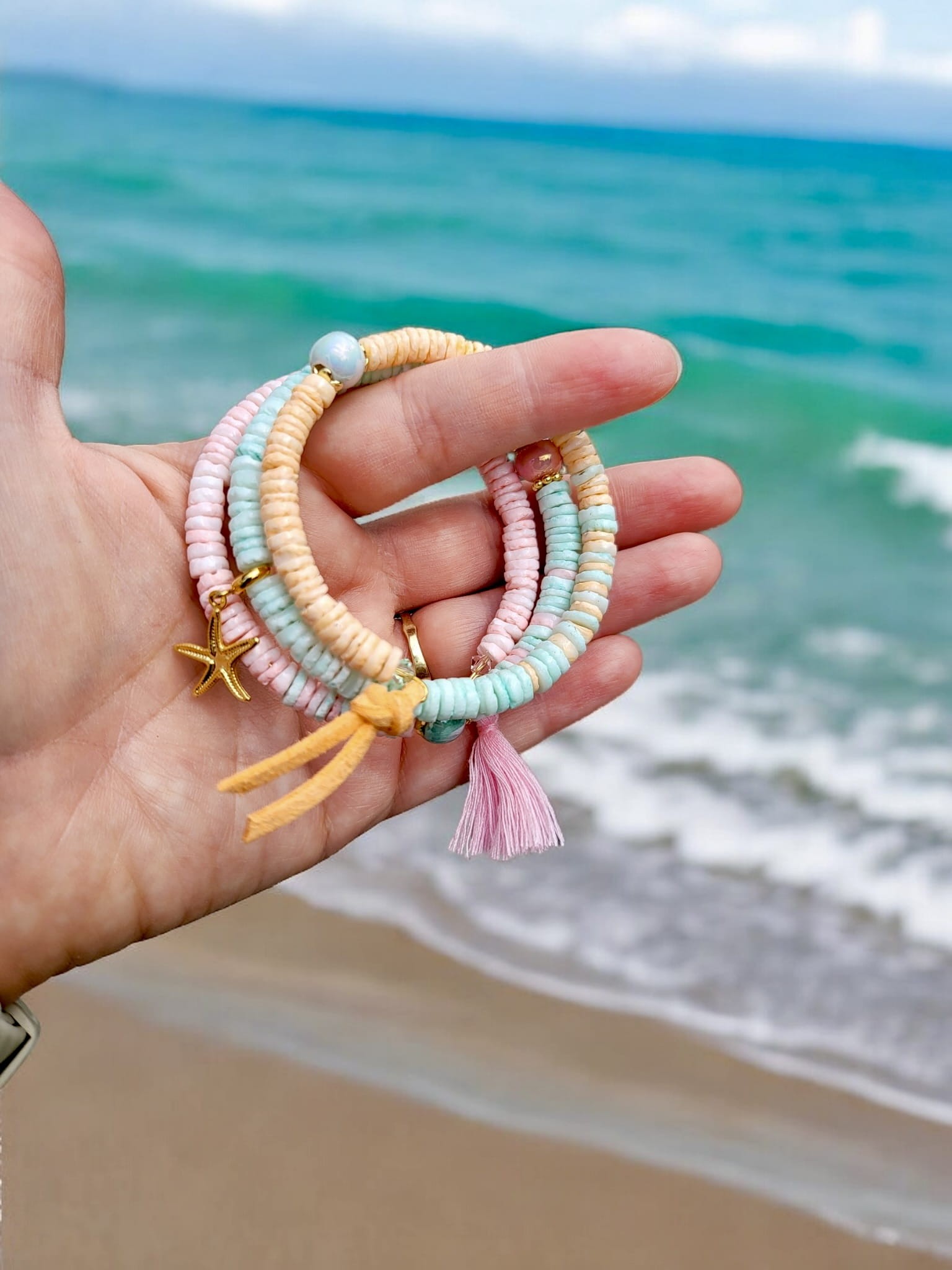 Bransoletka z muszli trzyrzędowa Lato