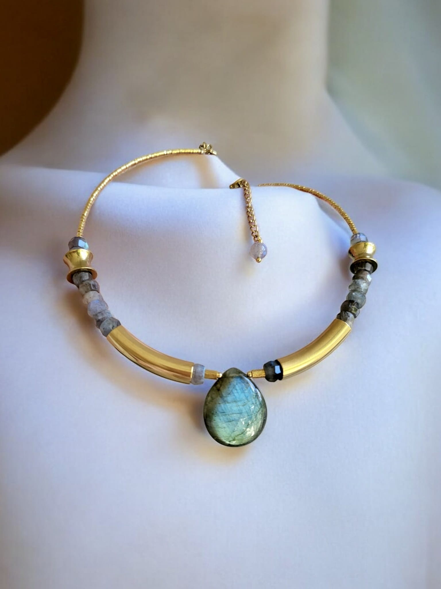 Choker z Labradorytem Klasy A - Naszyjnik Egipska Kropla