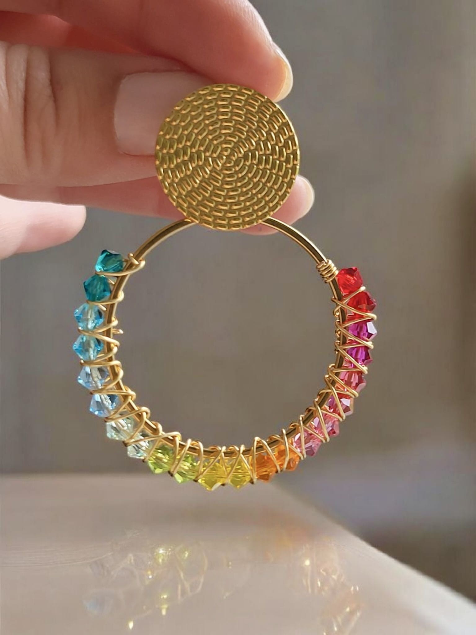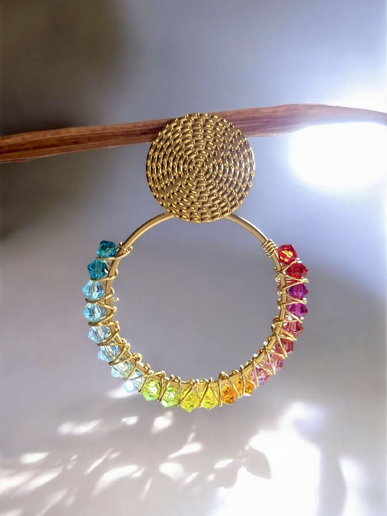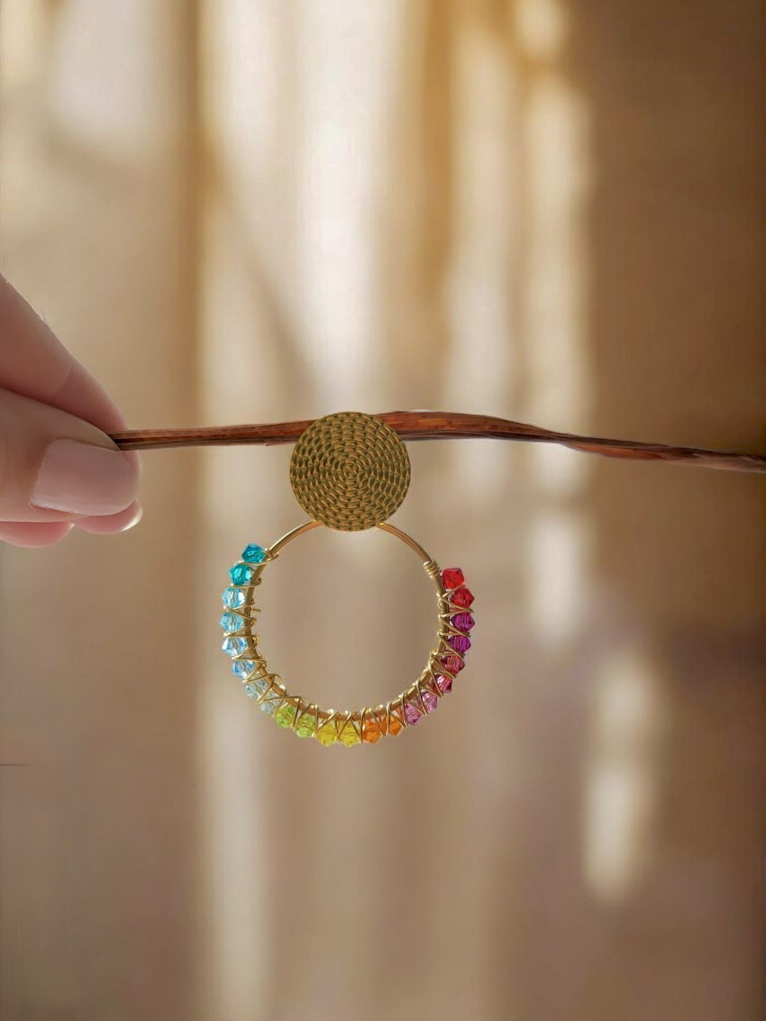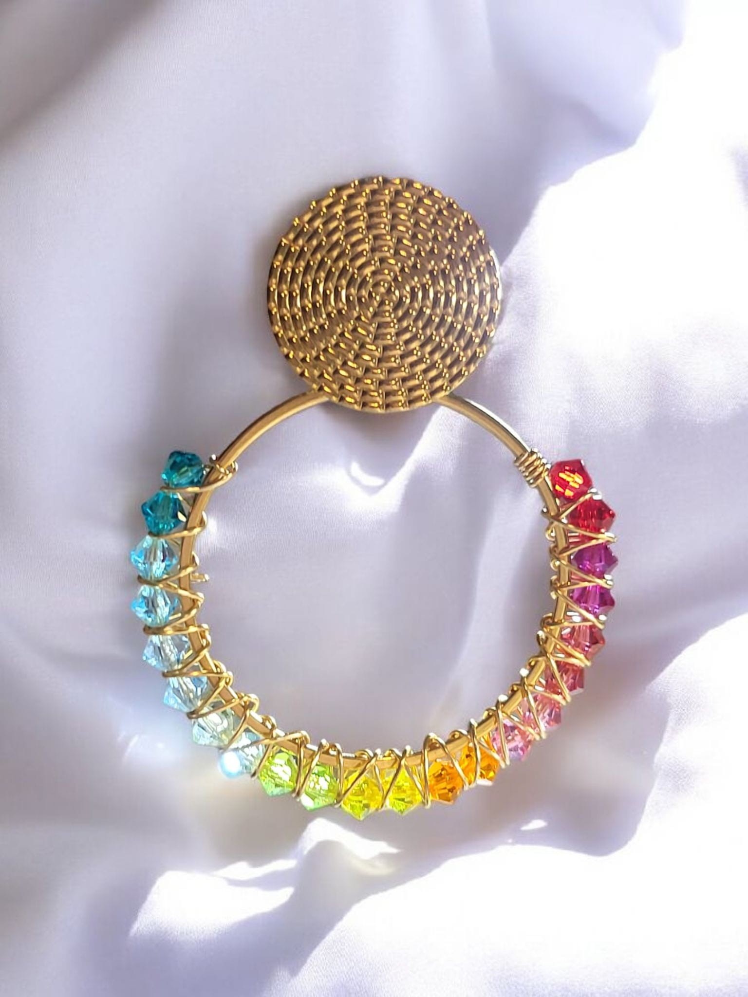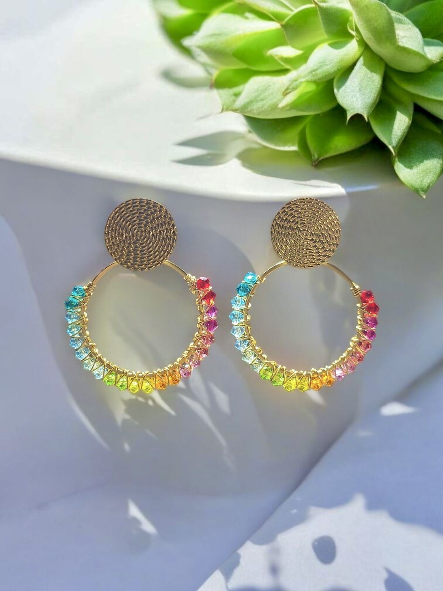 Kolczyki duże koła ombre z kryształkami Tęczowa Magia