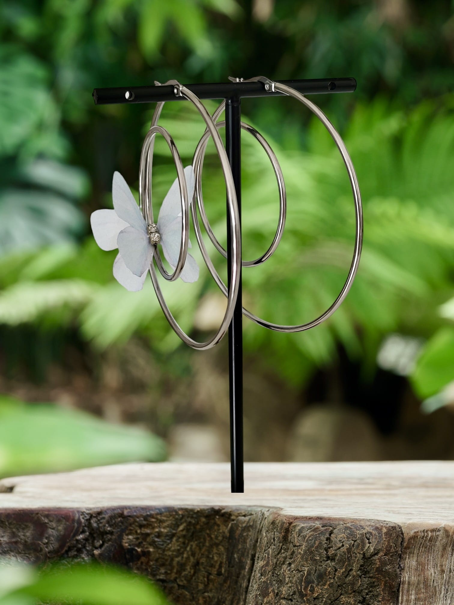 Kolczyki duże koła z motylem N12