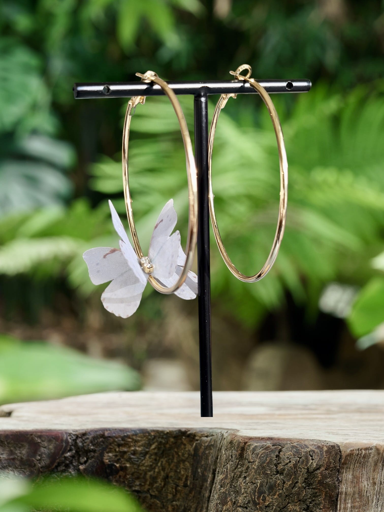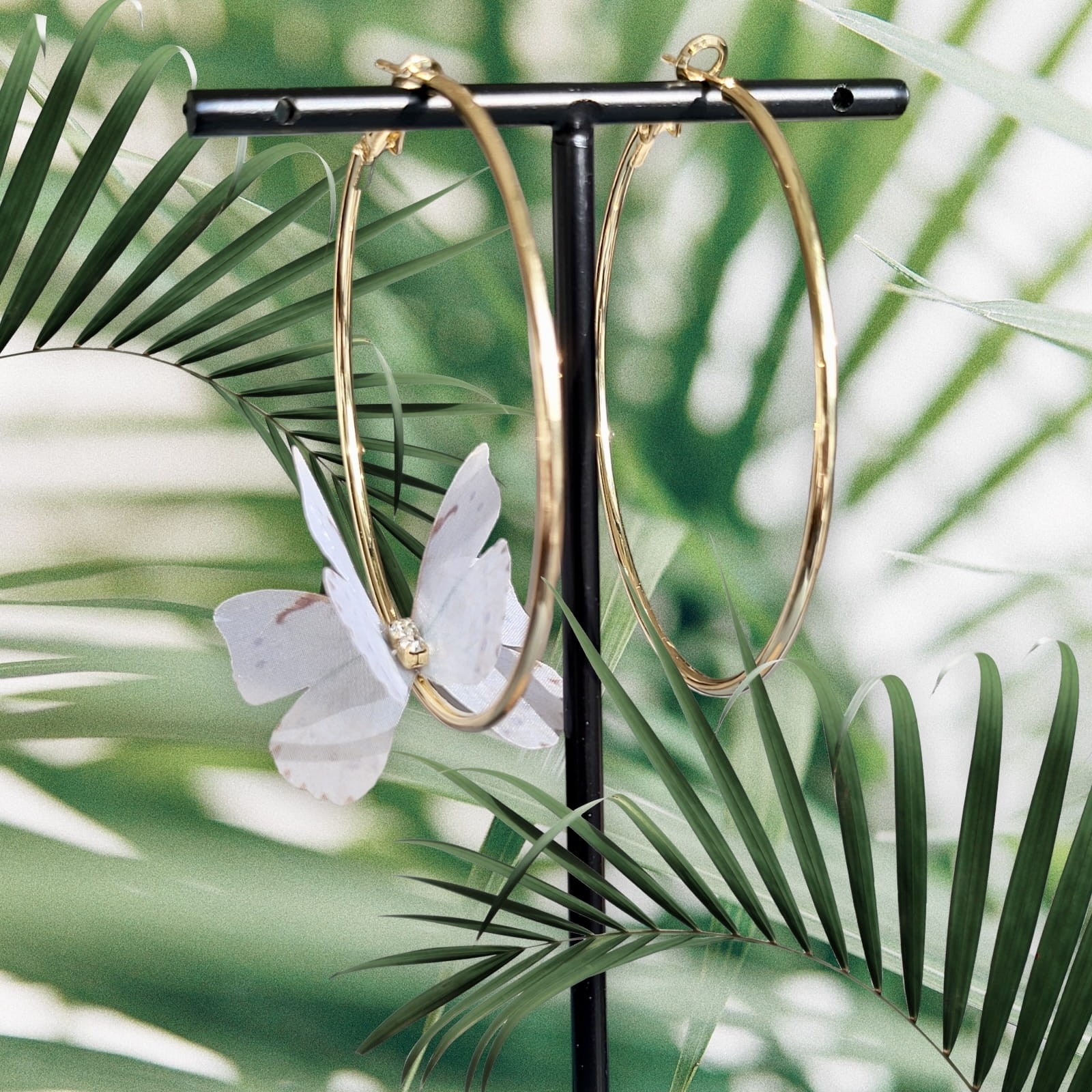 Kolczyki koła z trójwymiarowym delikatnym motylem z organzy