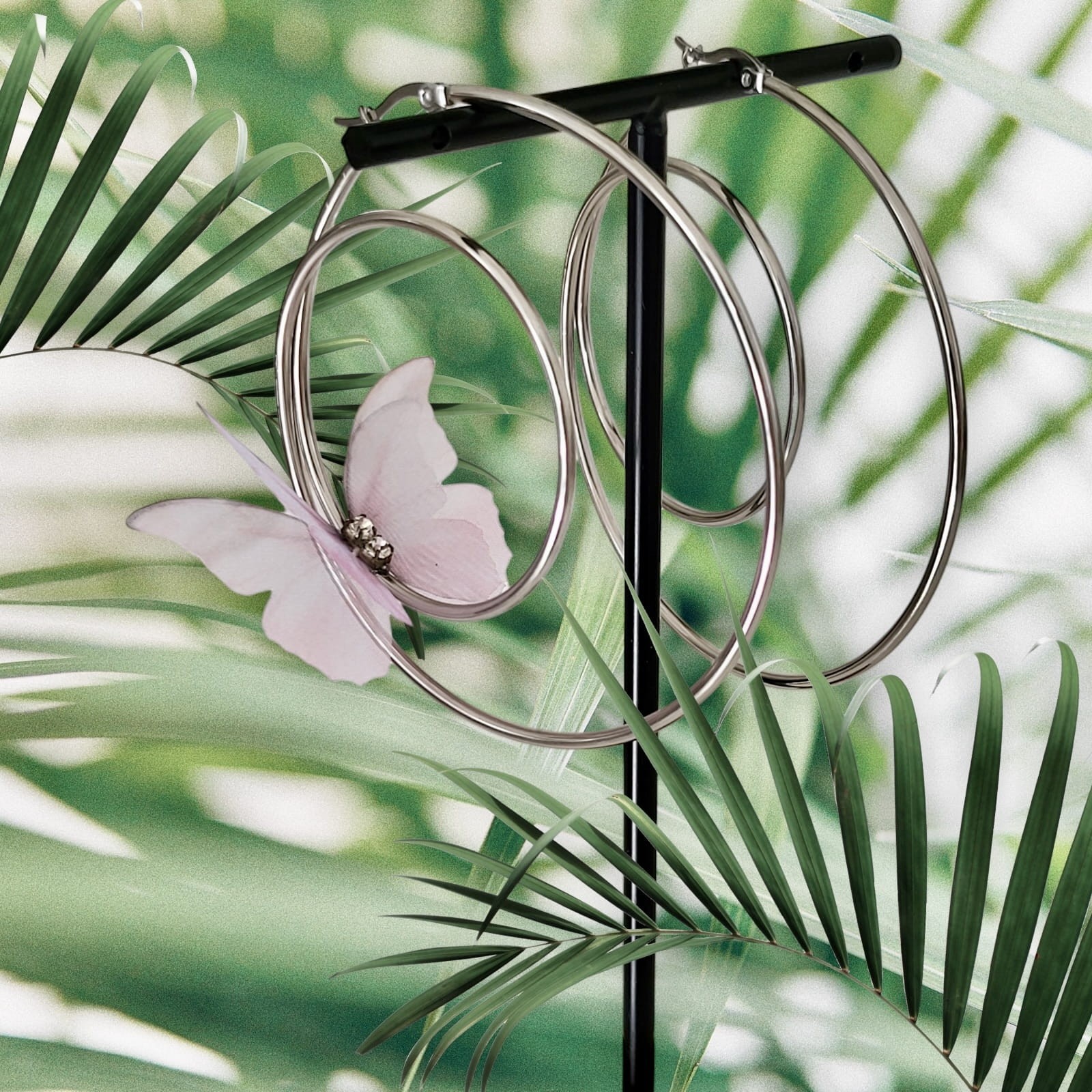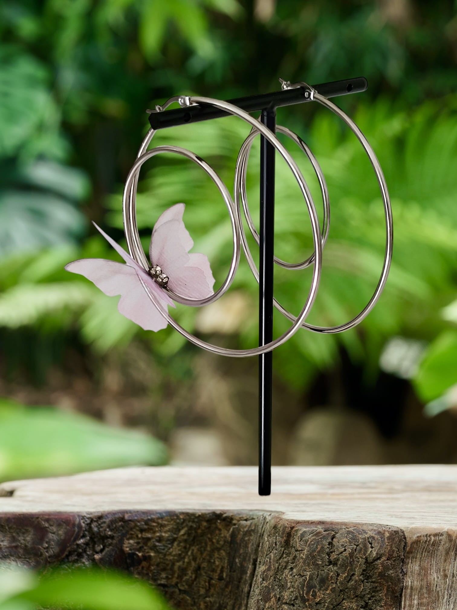 Kolczyki koła z trójwymiarowym delikatnym motylem z organzy