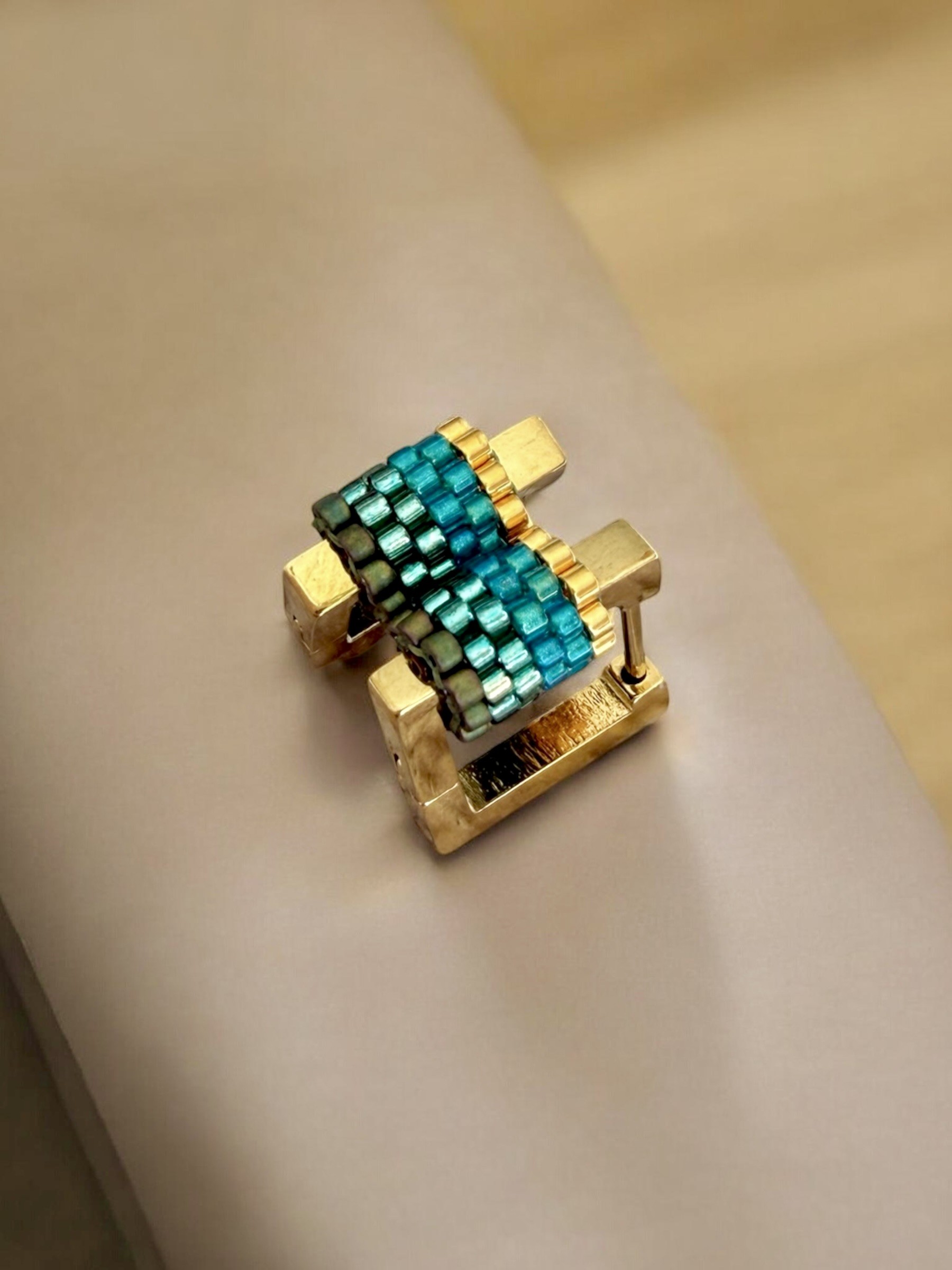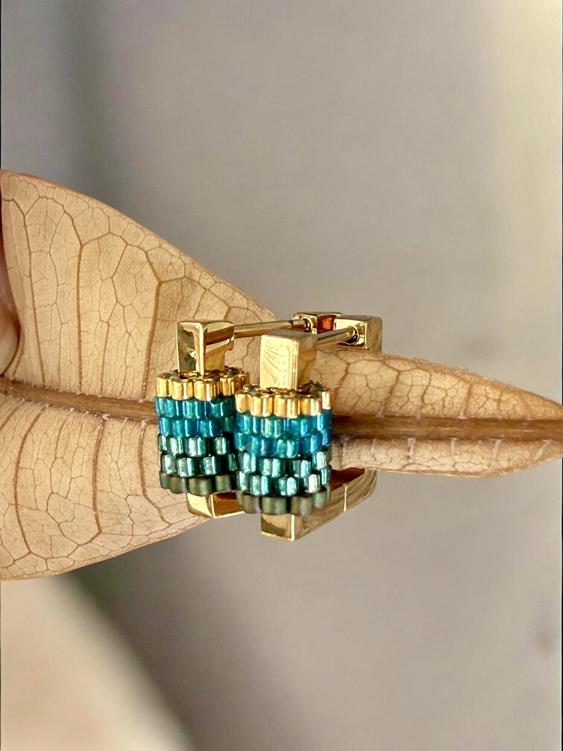 Kolczyki tkane Miyuki Turkus-Zieleń Evelyn – Geometryczne