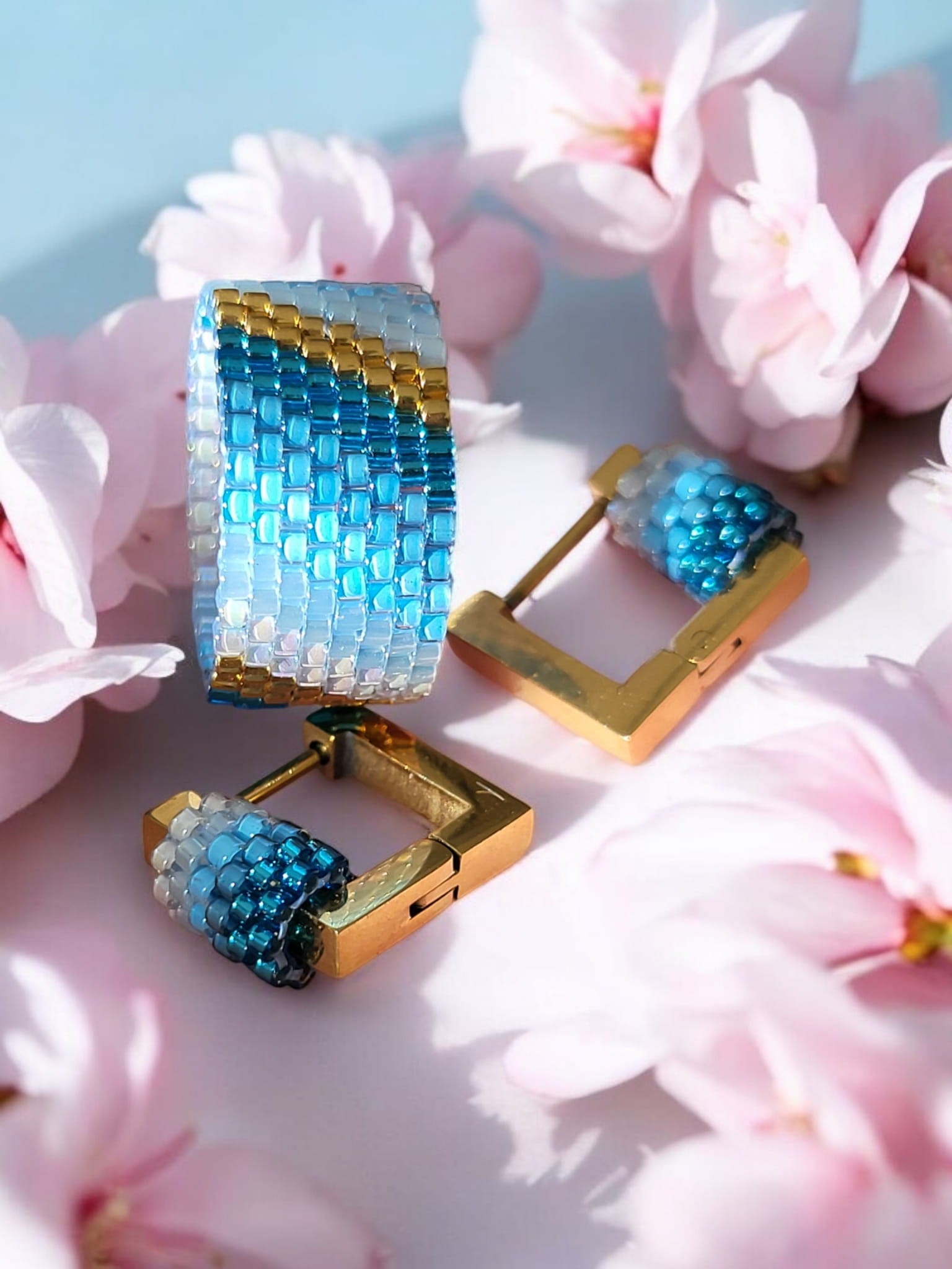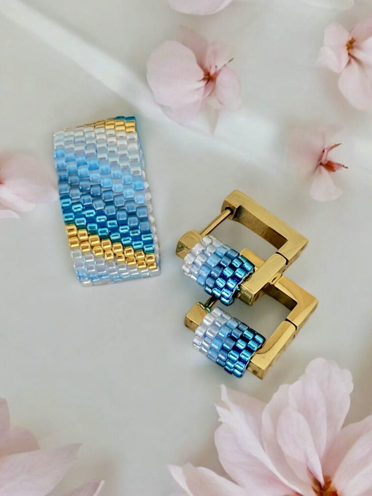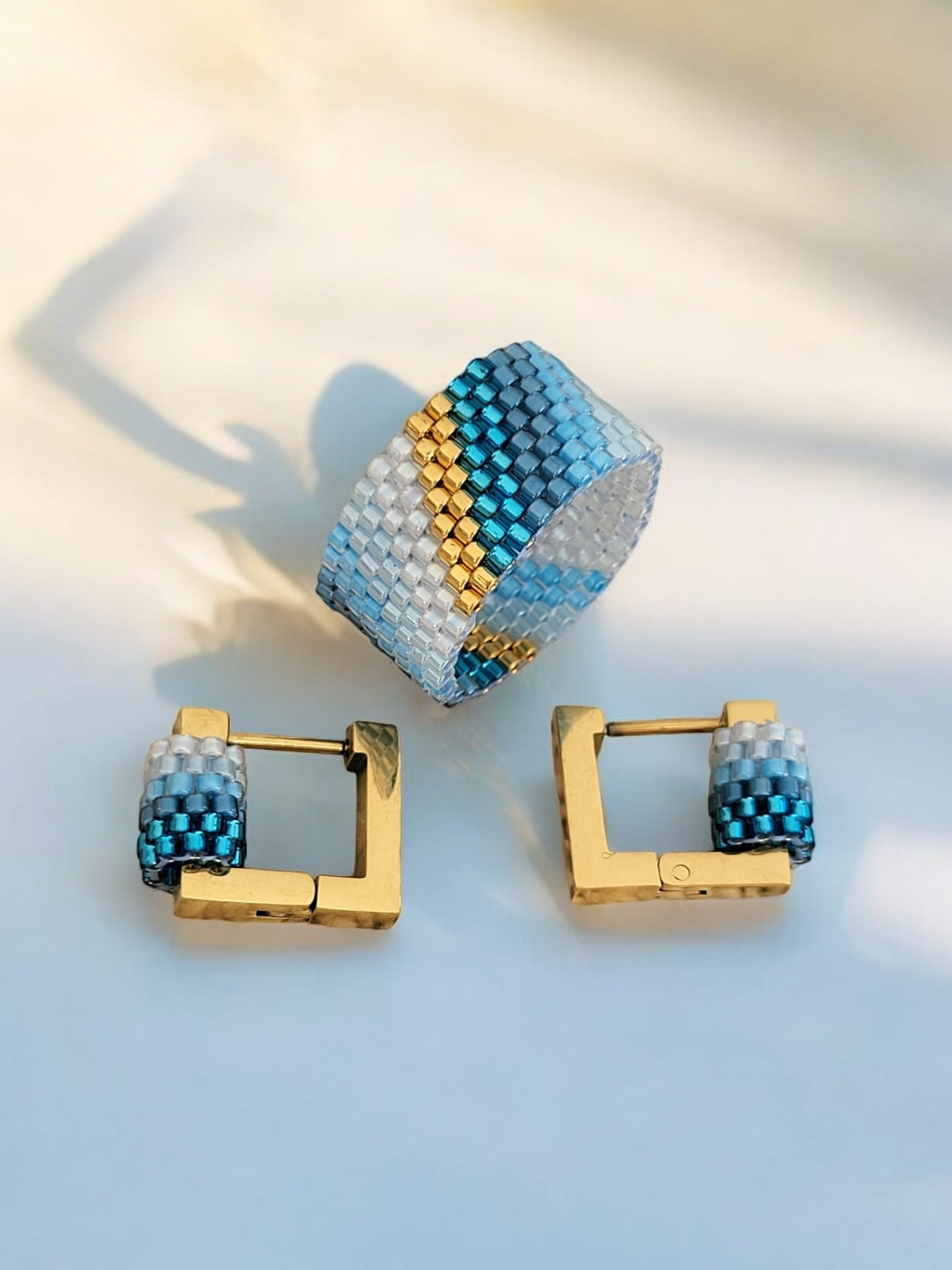 Komplet Biżuterii Premium Miyuki – Kolczyki i Pierścionek w Odcieniach Błękitu "Oceanic Elegance"