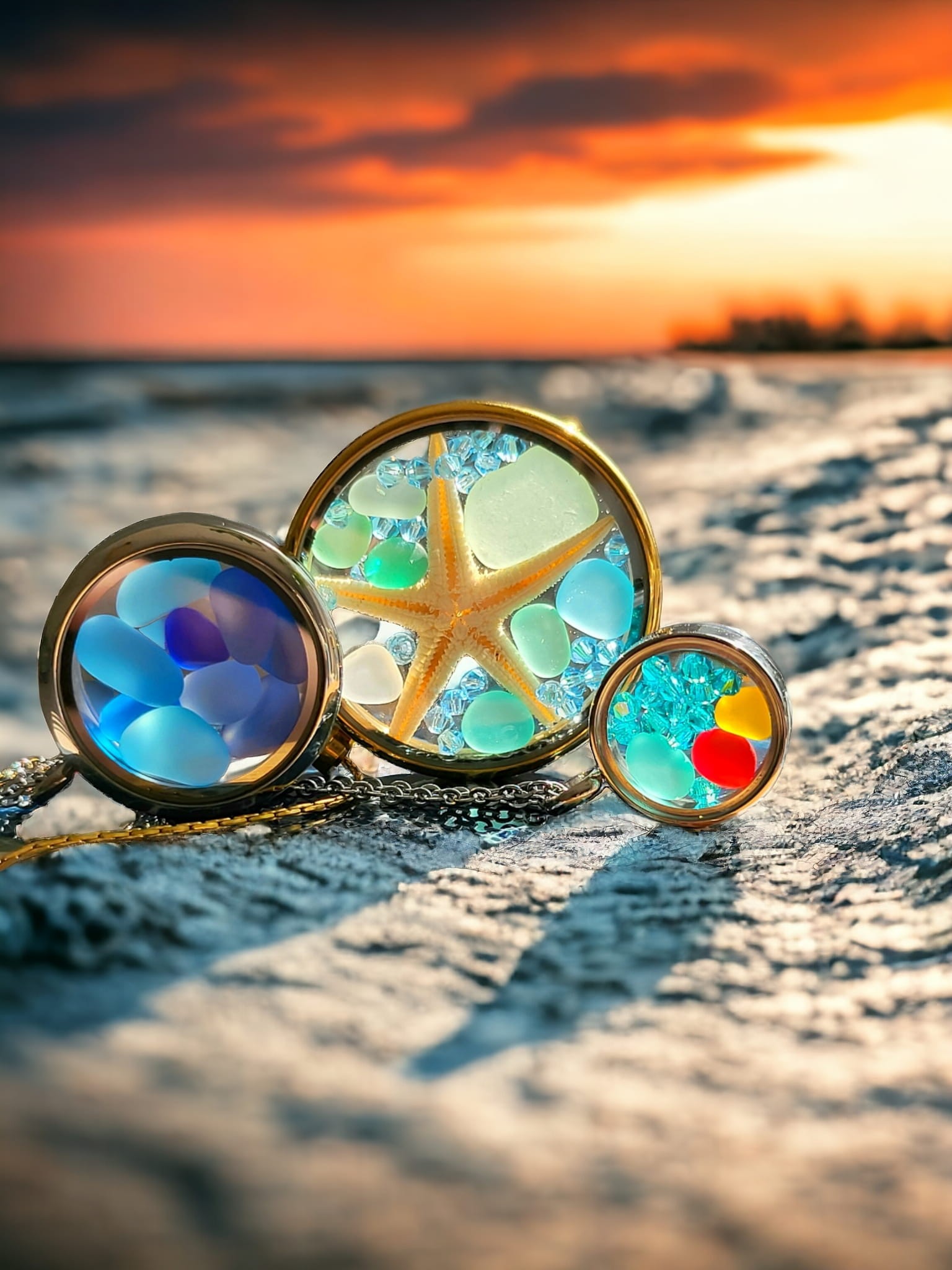 Mały medalion ze szkłem morskim Morze Czerwone N5