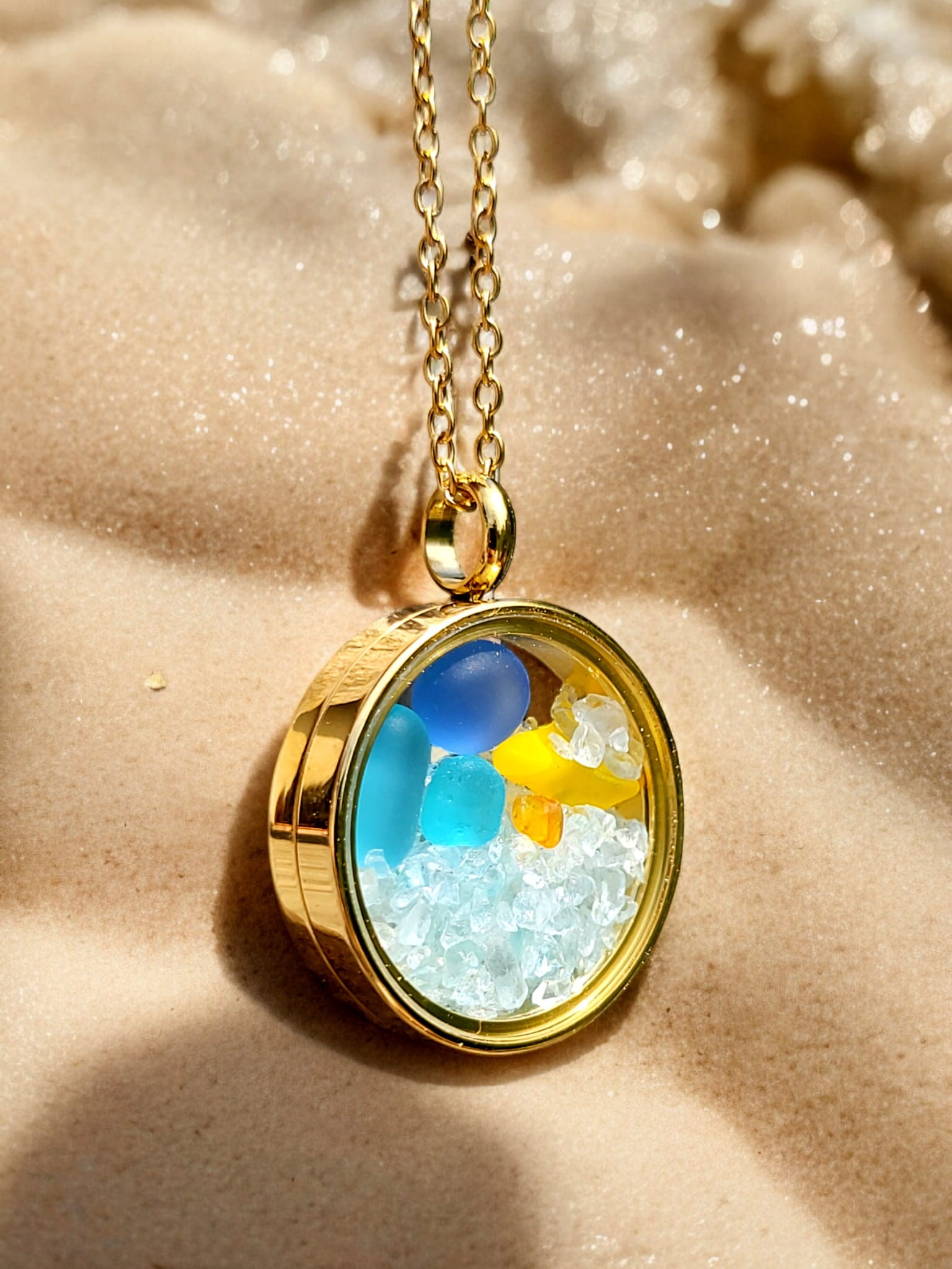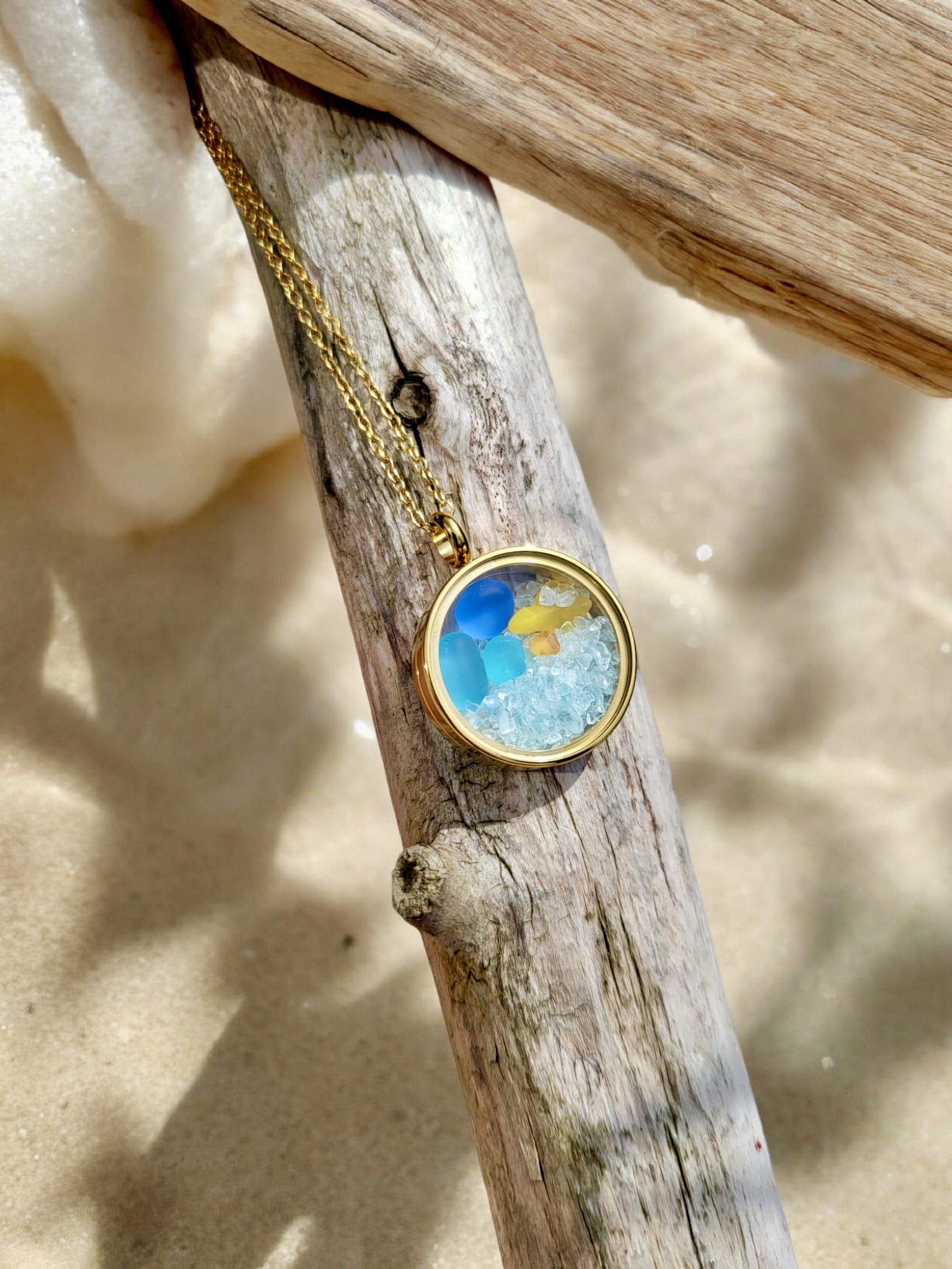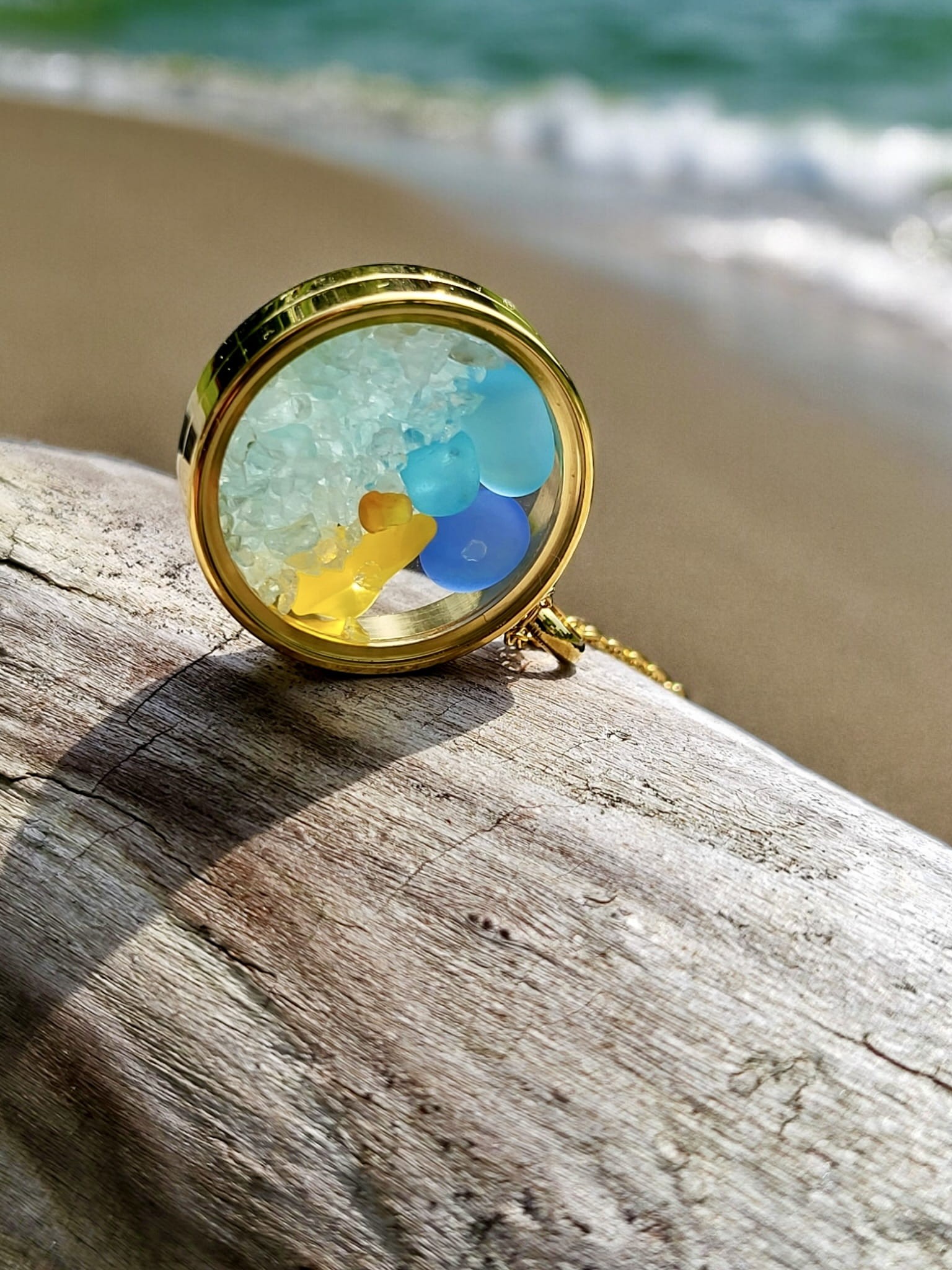 Medalion ze szkłem morskim Plaża N11 - jeden egzemplarz