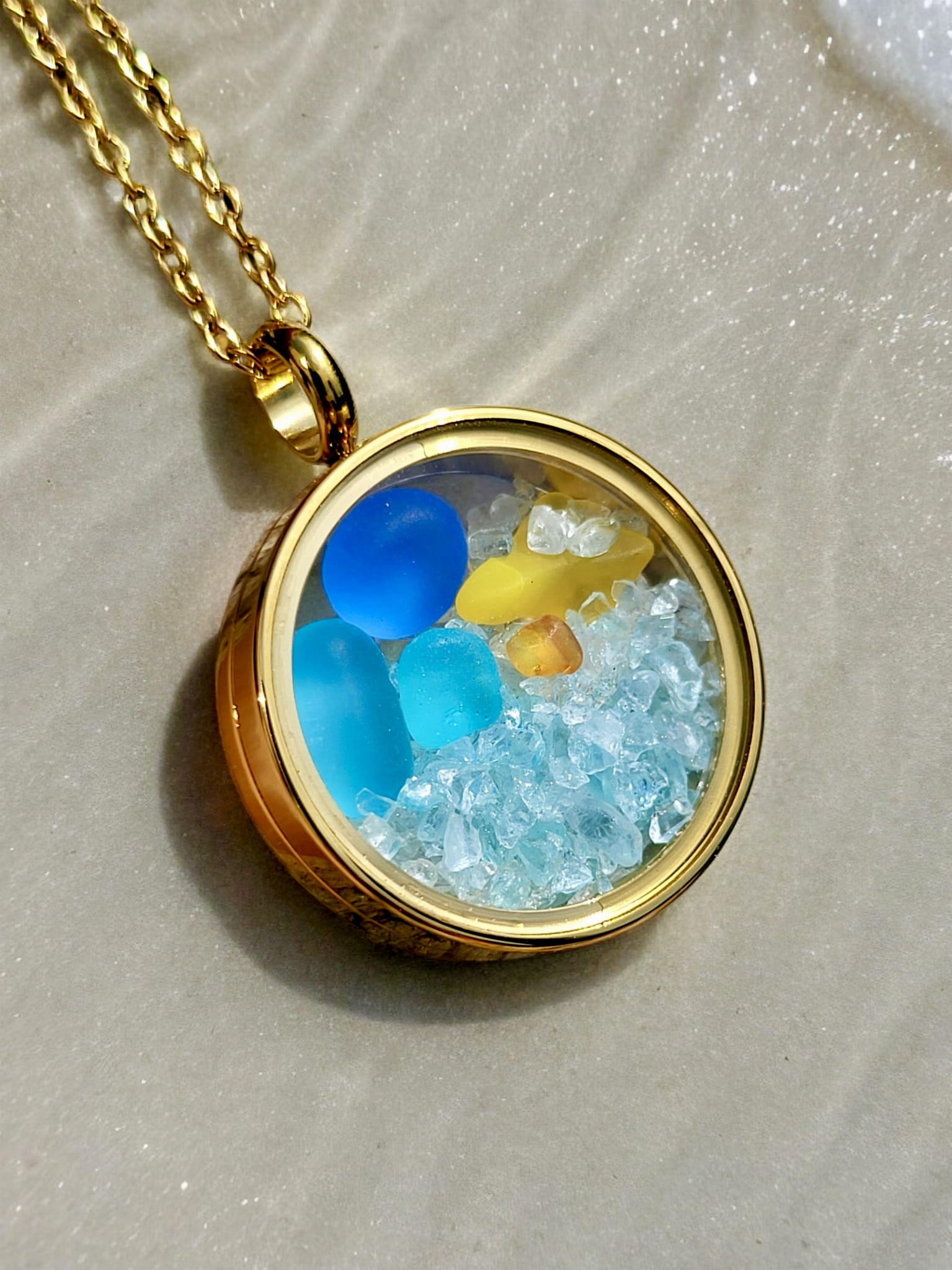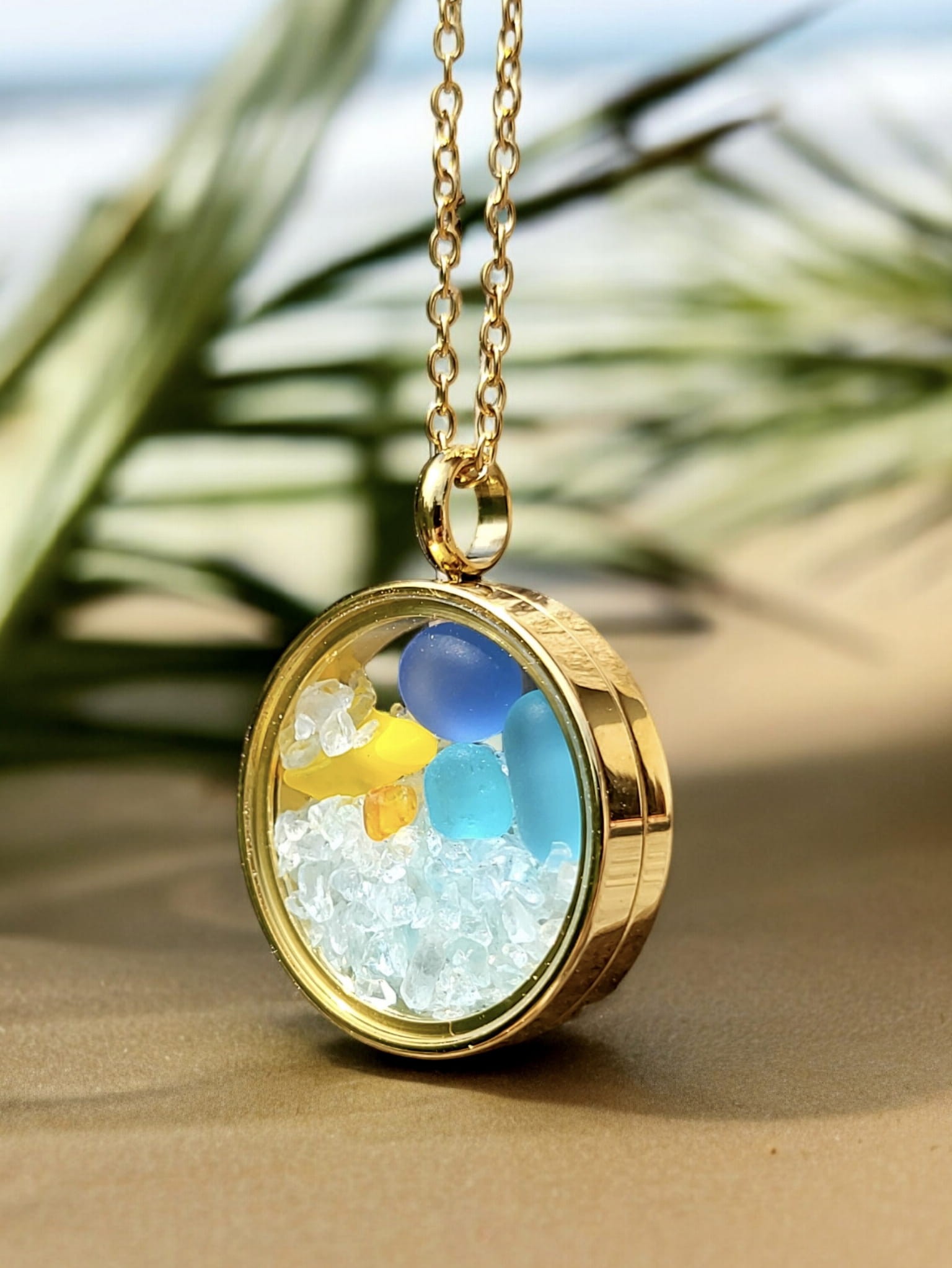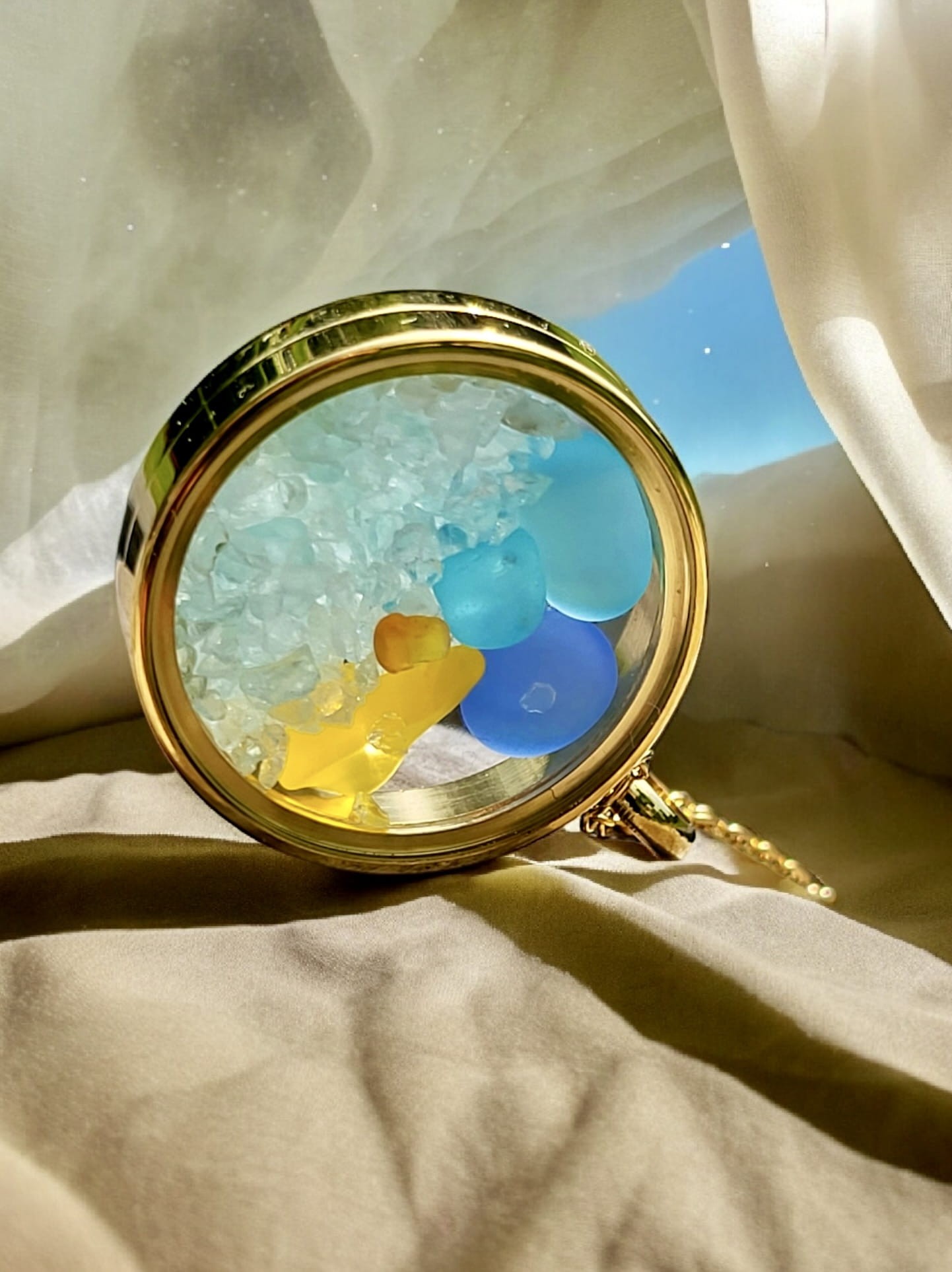 Medalion ze szkłem morskim Plaża N11 - jeden egzemplarz
