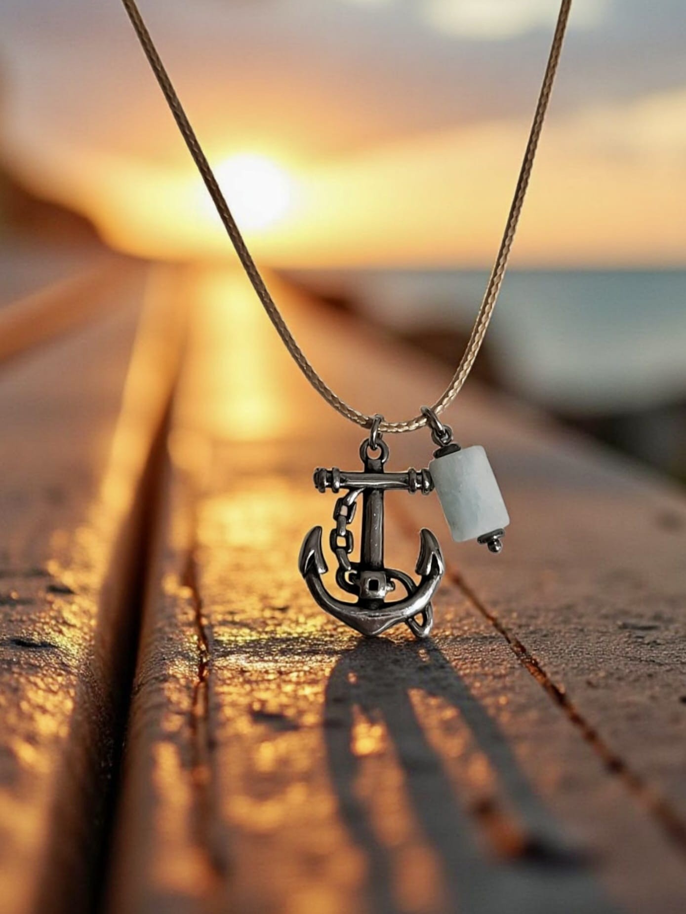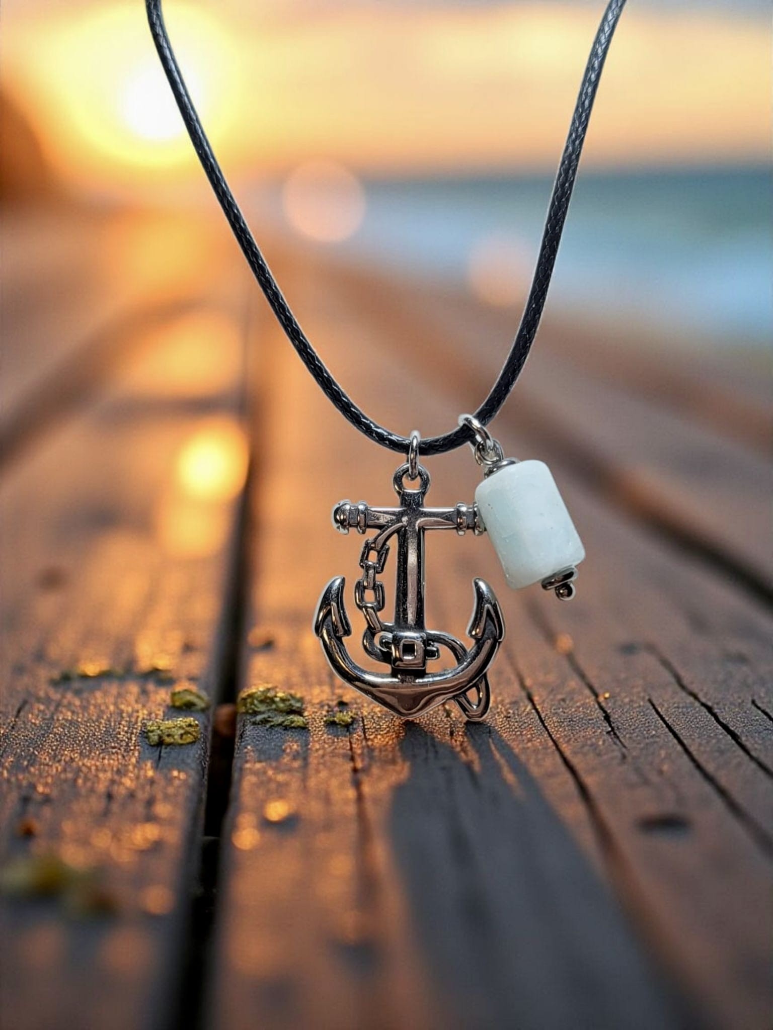 Odkryj wyjątkowy naszyjnik, który łączy w sobie morski charakter, siłę symboli i energię naturalnych kamieni.