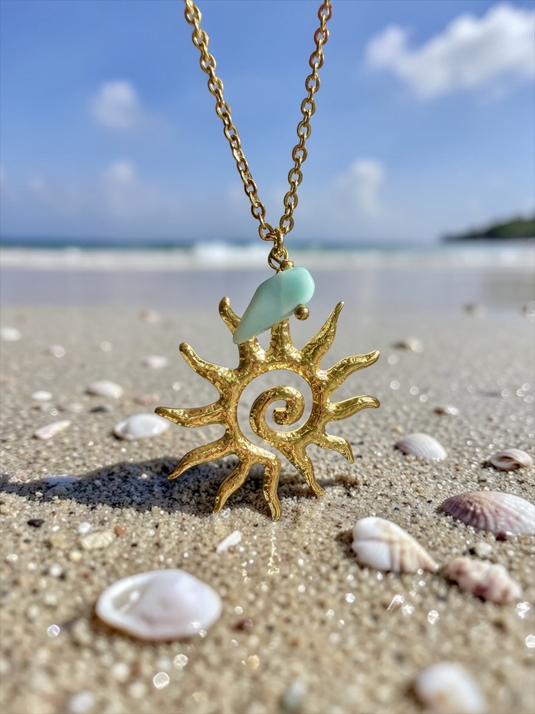 To naszyjnik, który wygląda jak promień słońca zamknięty w biżuterii.