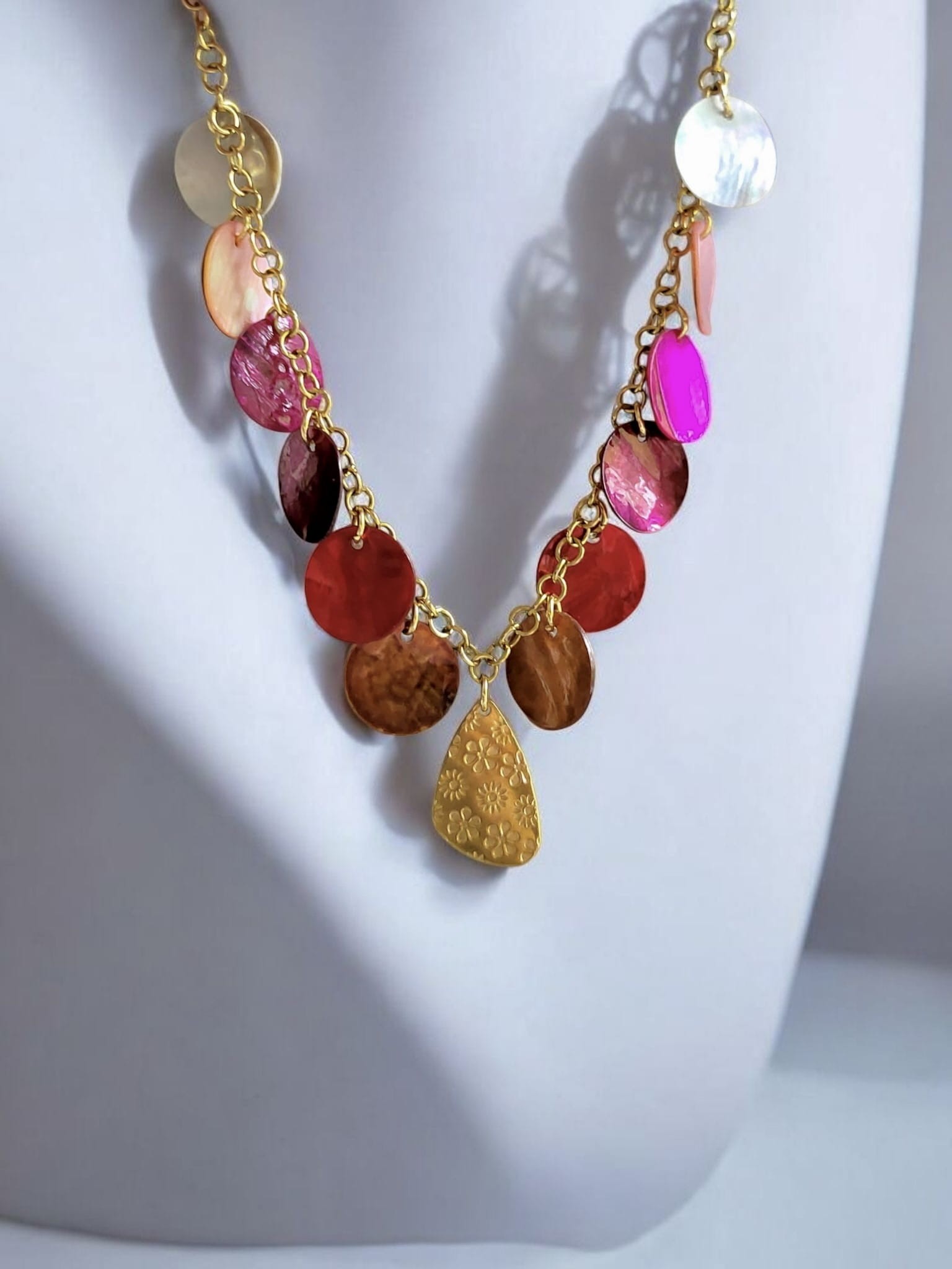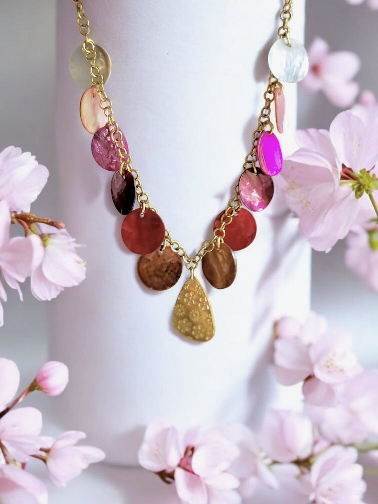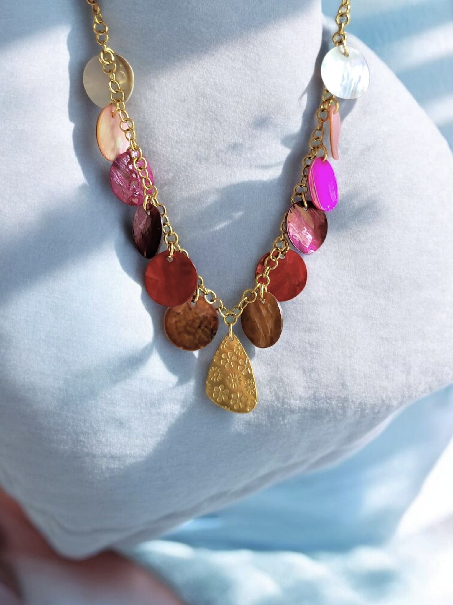 Naszyjnik Muszla & Złoto – Kolorowy naszyjnik z naturalnych muszli i pozłacanej stali