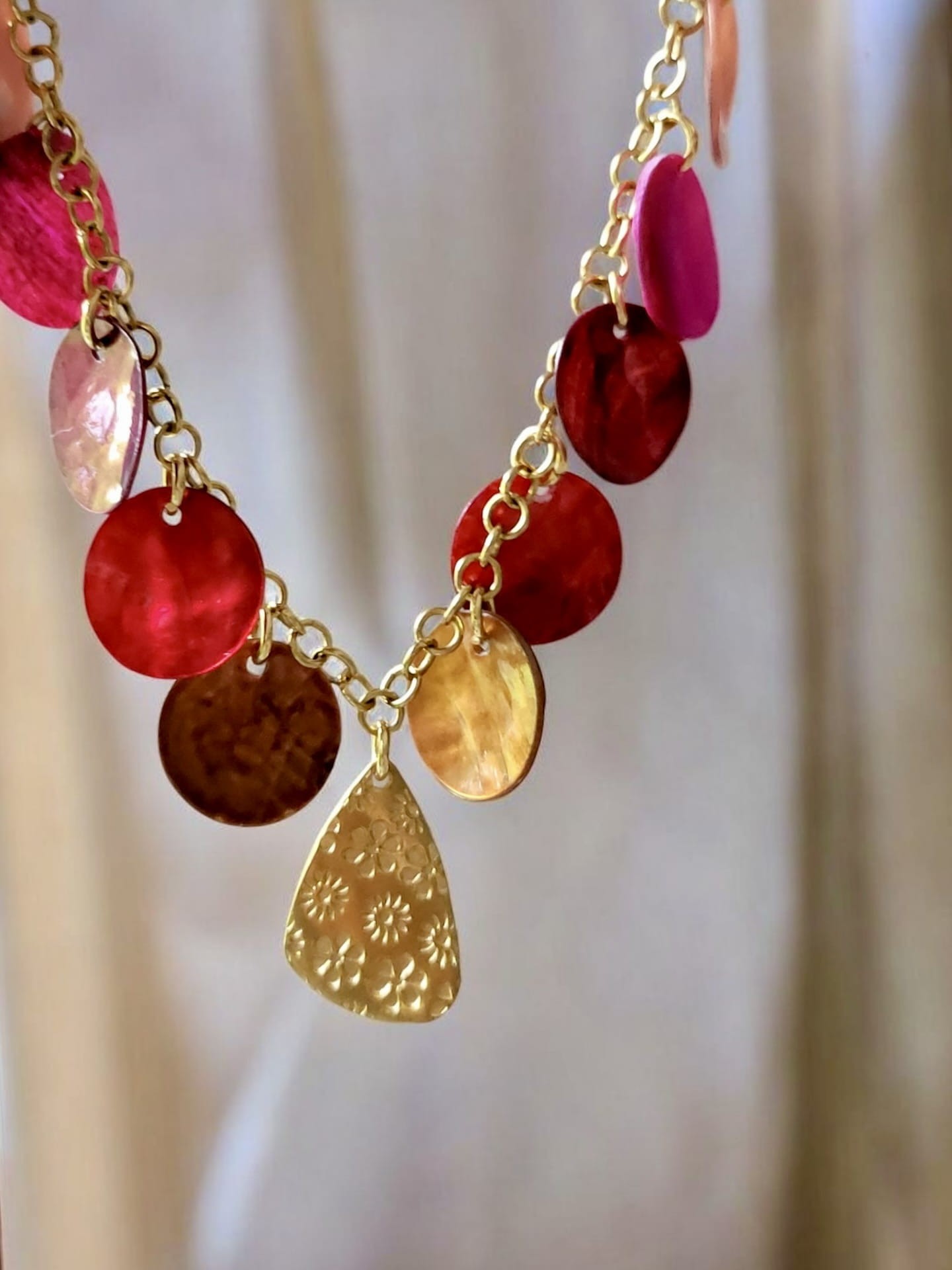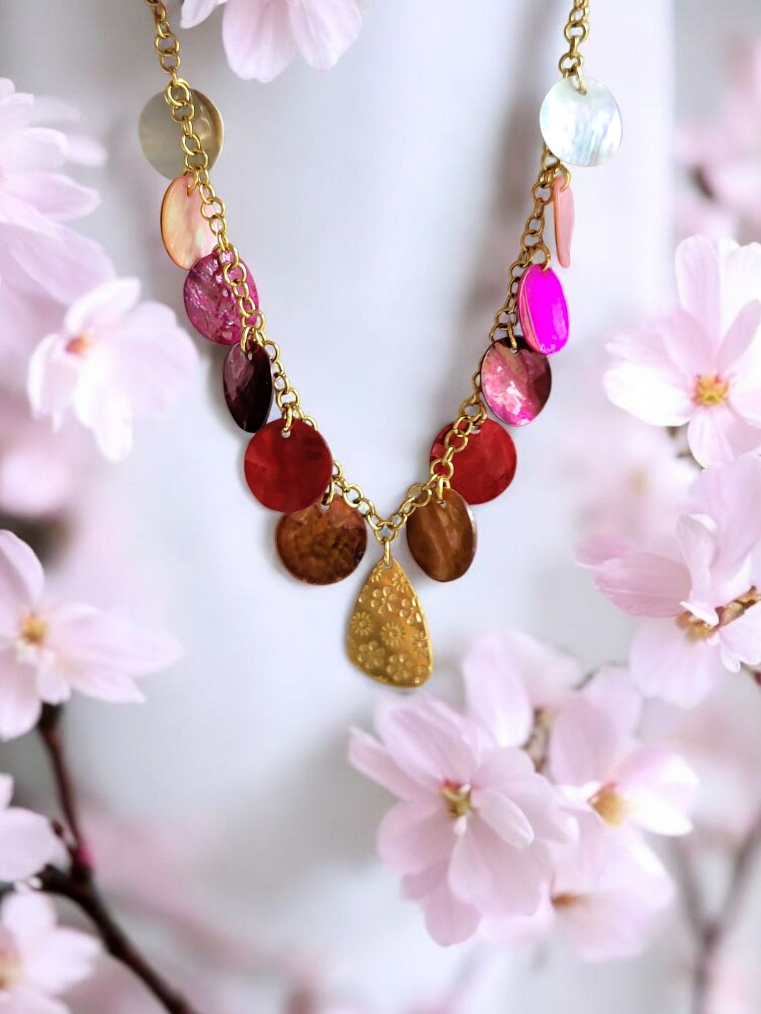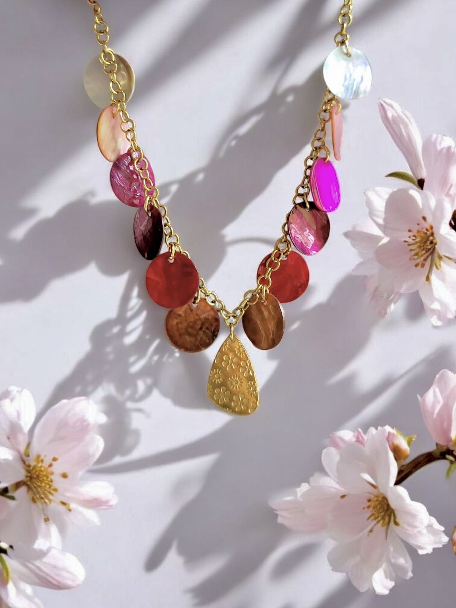 Naszyjnik Muszla & Złoto – Kolorowy naszyjnik z naturalnych muszli i pozłacanej stali