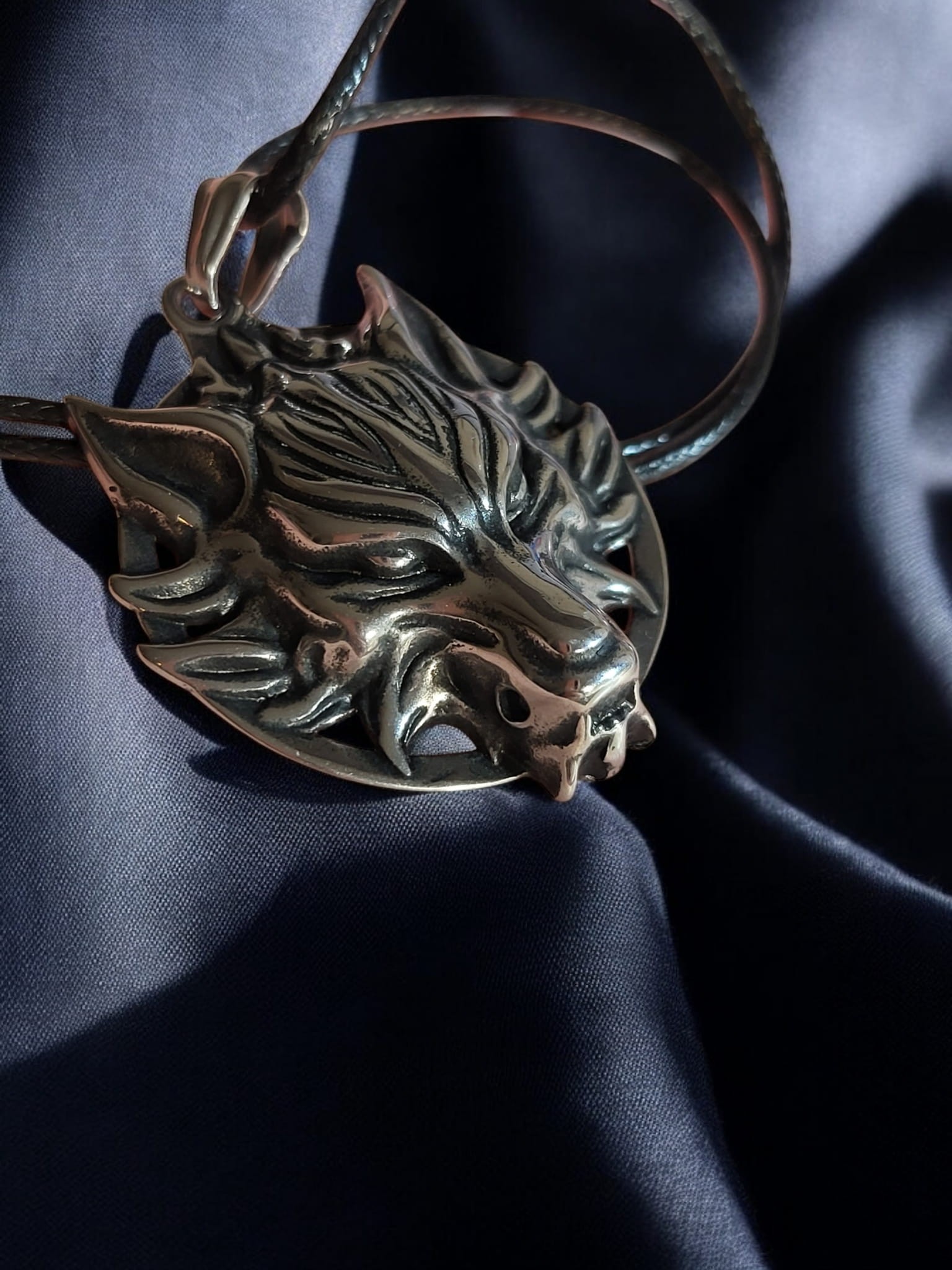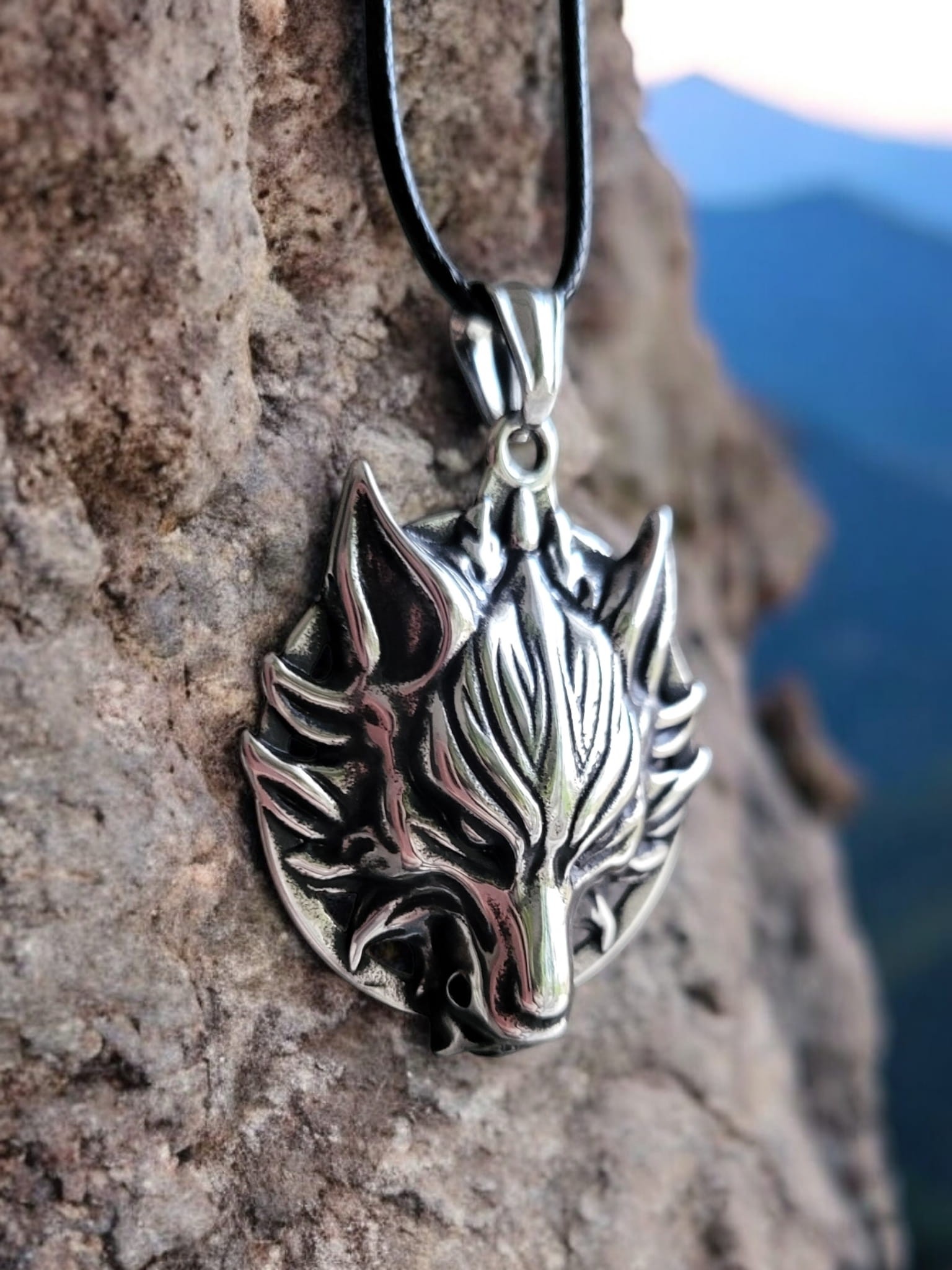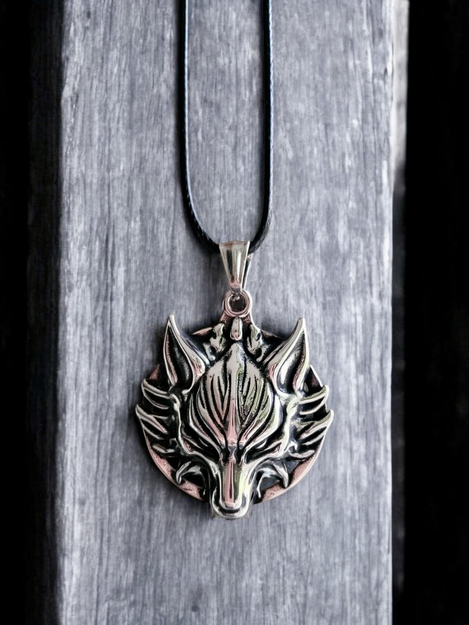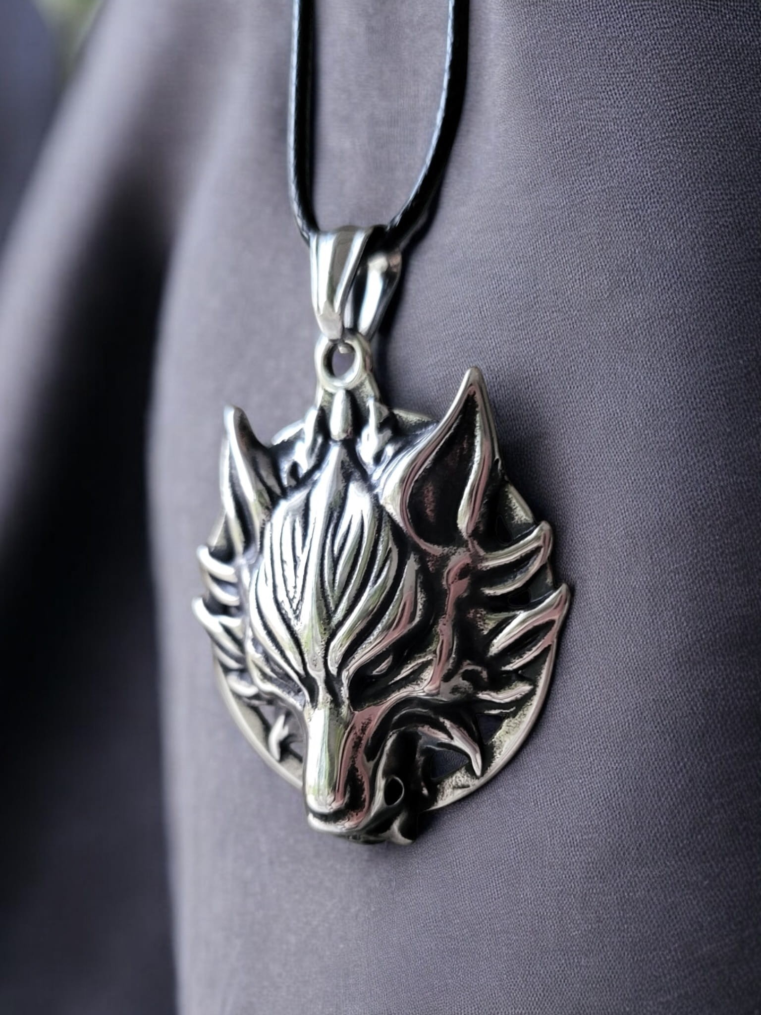 Centralnym punktem naszyjnika jest zawieszka w rozmiarze około 4 cm, przedstawiająca wilka – symbol odwagi, intuicji i lojalności. Wykonana z wysokiej jakości stali szlachetnej, jest nie tylko solidna, ale także odporna na codzienne wyzwania. Ciemne, starannie wykonane zdobienia nadają zawieszce głębi i charakteru, dzięki czemu przyciąga spojrzenia i podkreśla Twoją indywidualność.