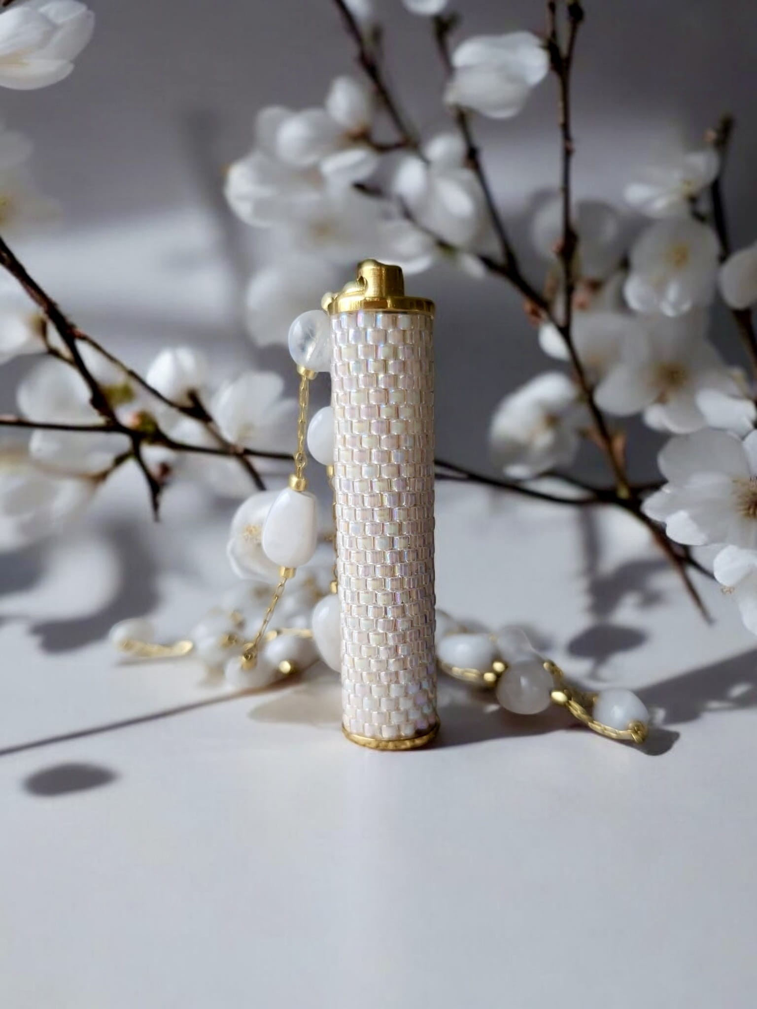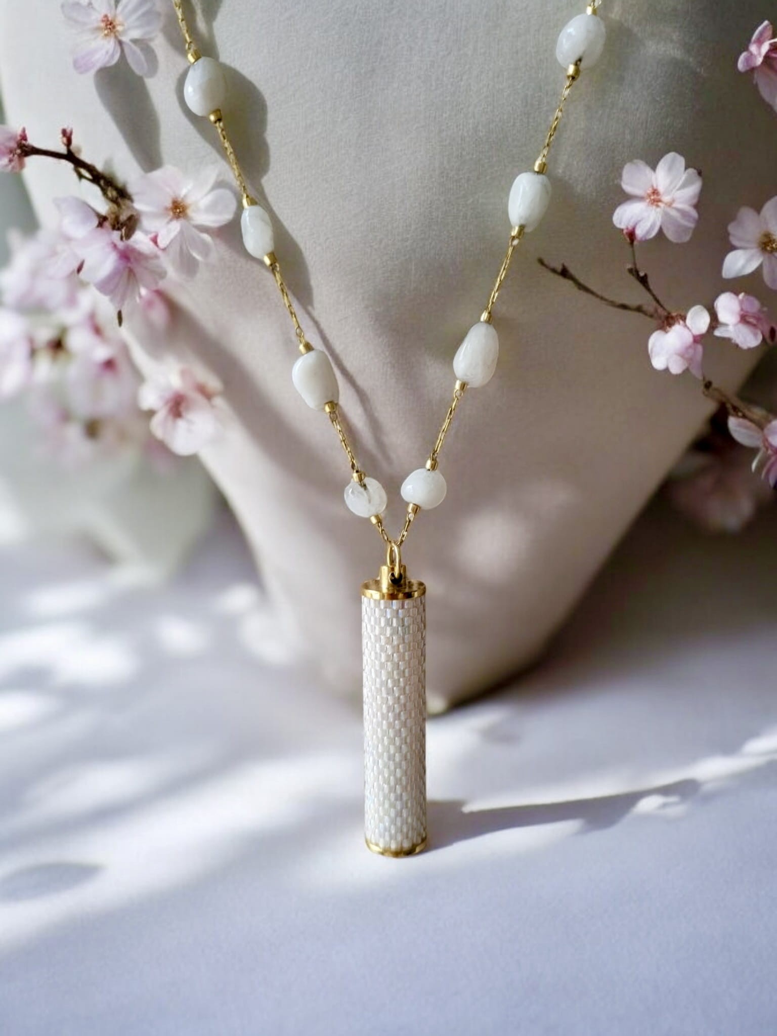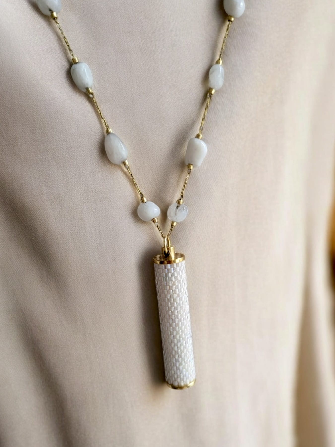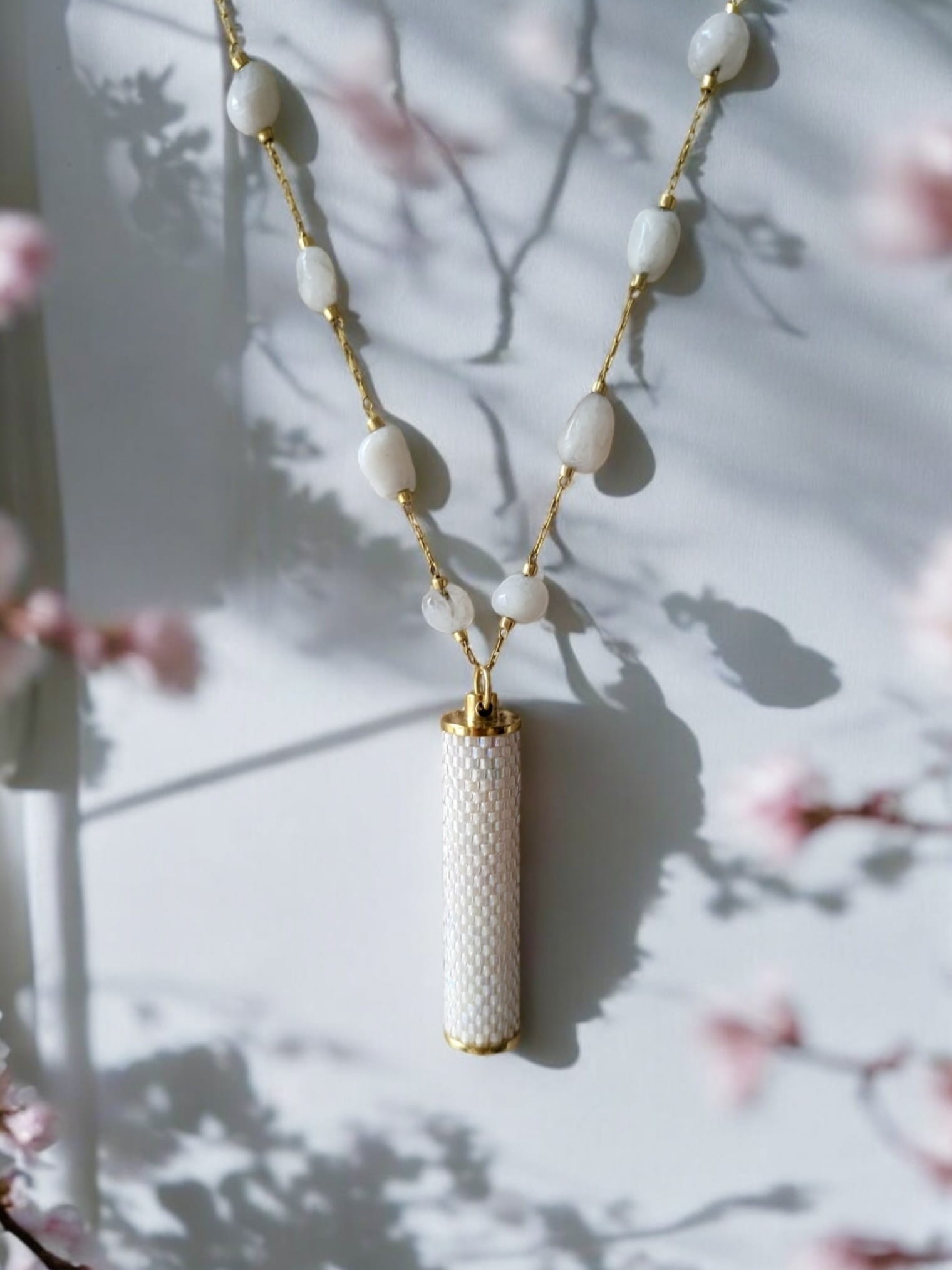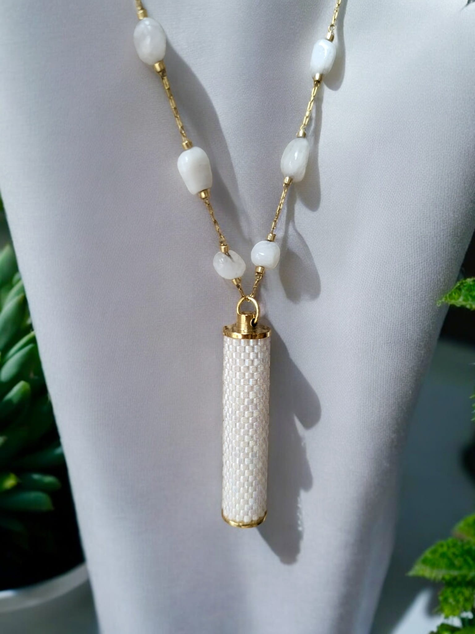 Naszyjnik tkany z kamieniami księżycowymi Biała Lilia