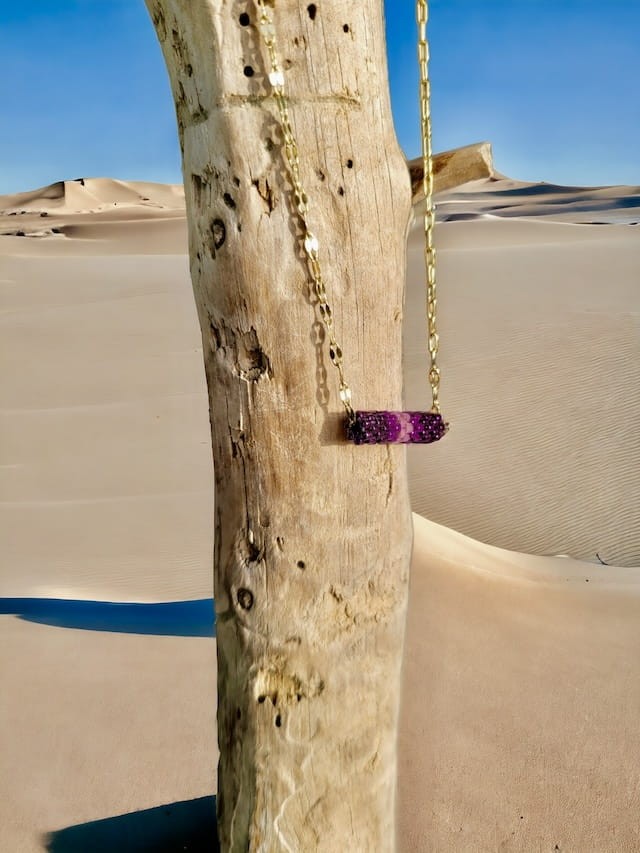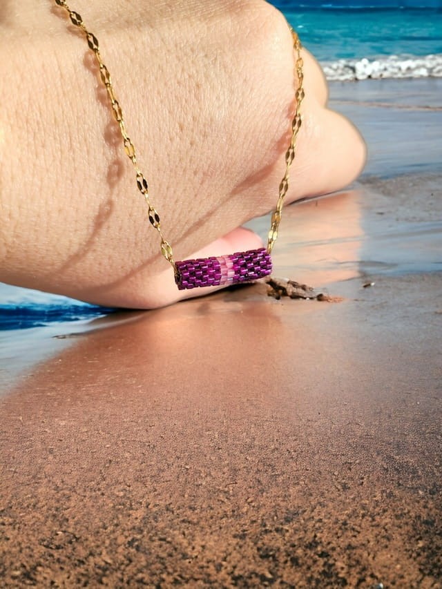 Naszyjnik tkany z koralików Miyuki, wrzosowy Wrzosy