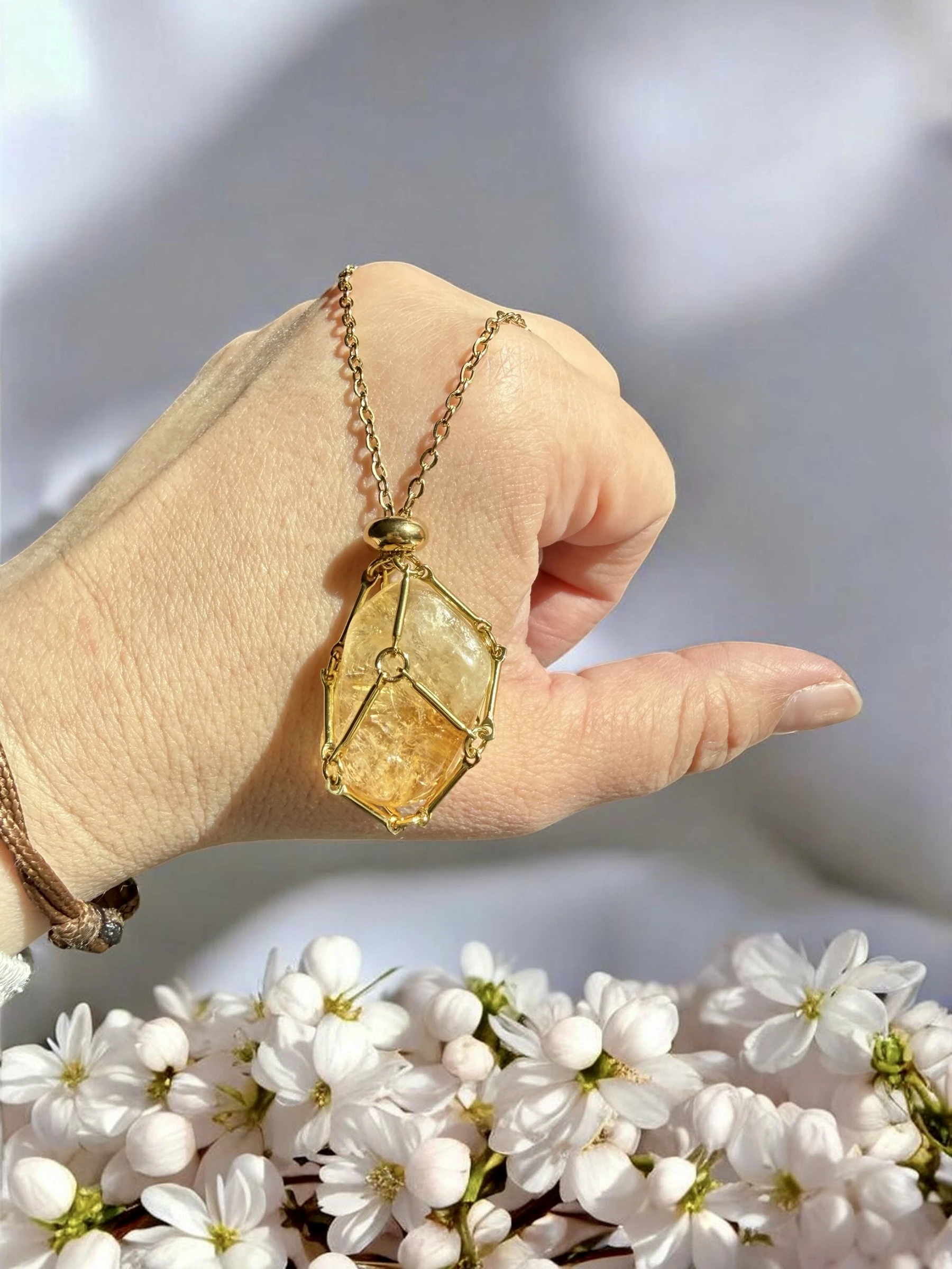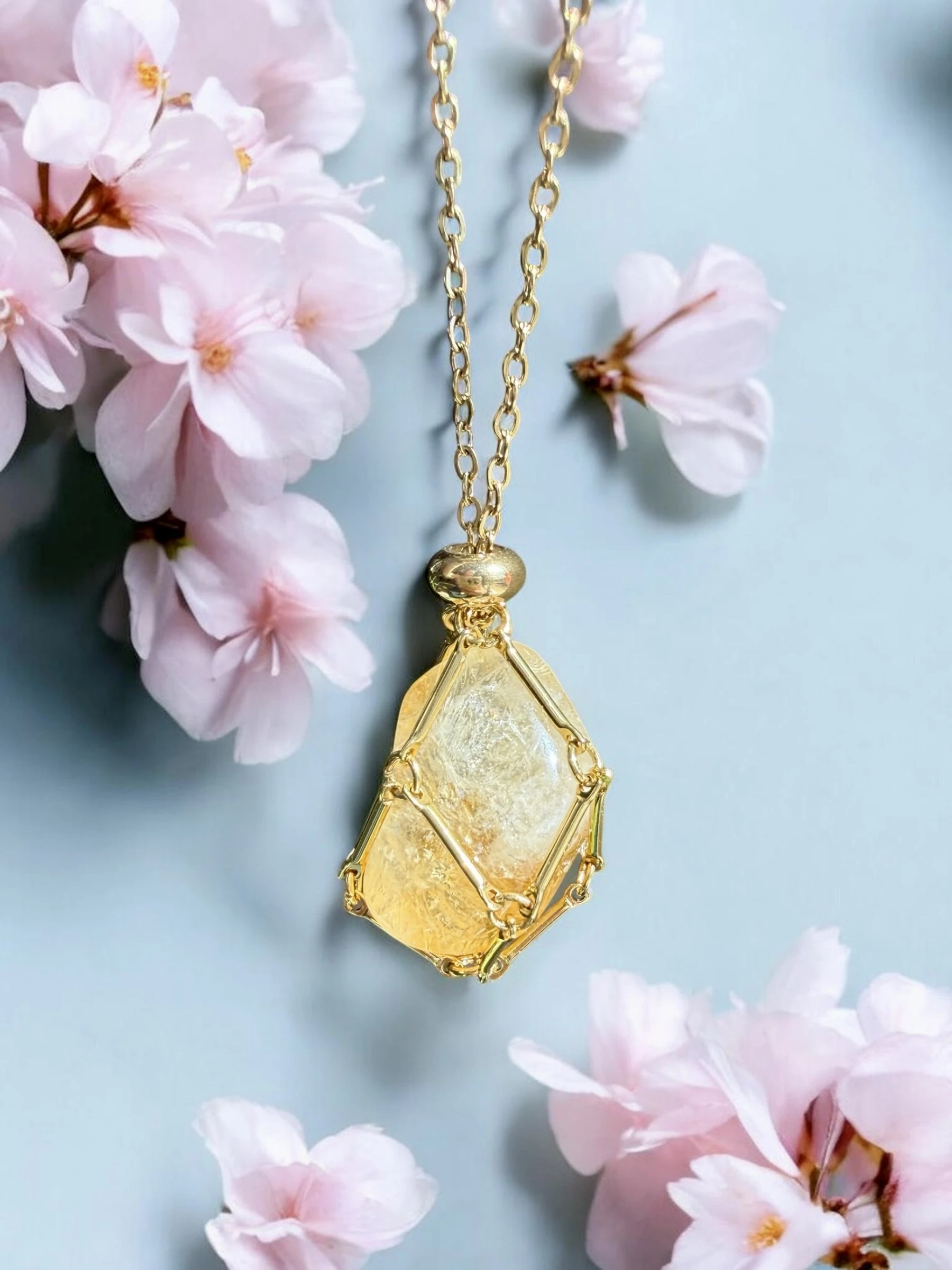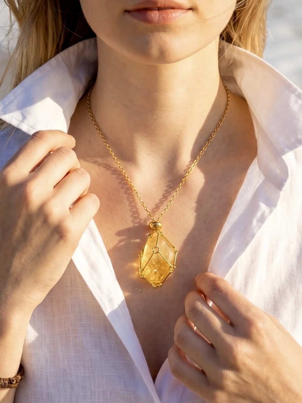 Naszyjnik z naturalnym cytrynem | duży kamień 2–3 cm | biżuteria limitowana