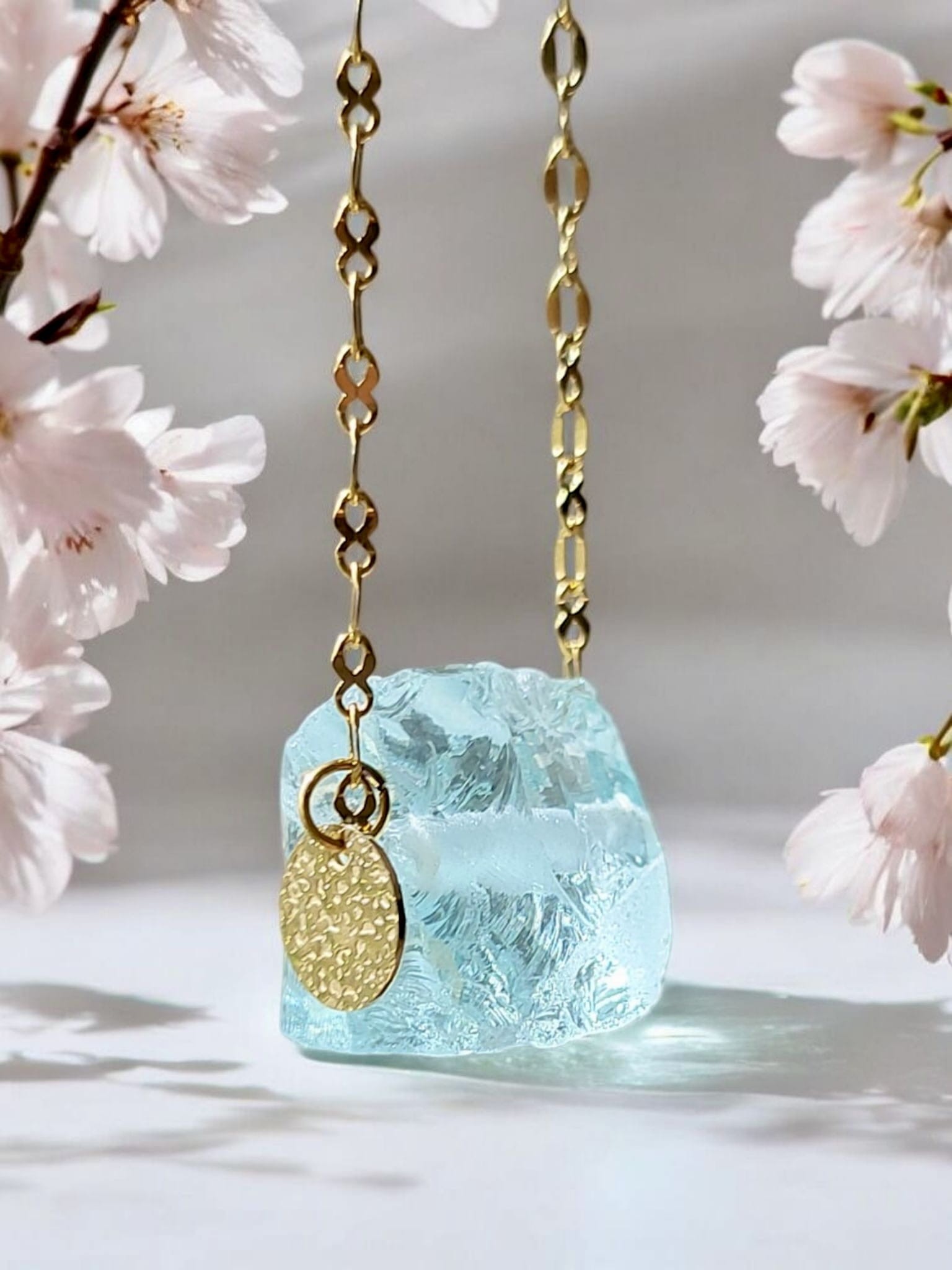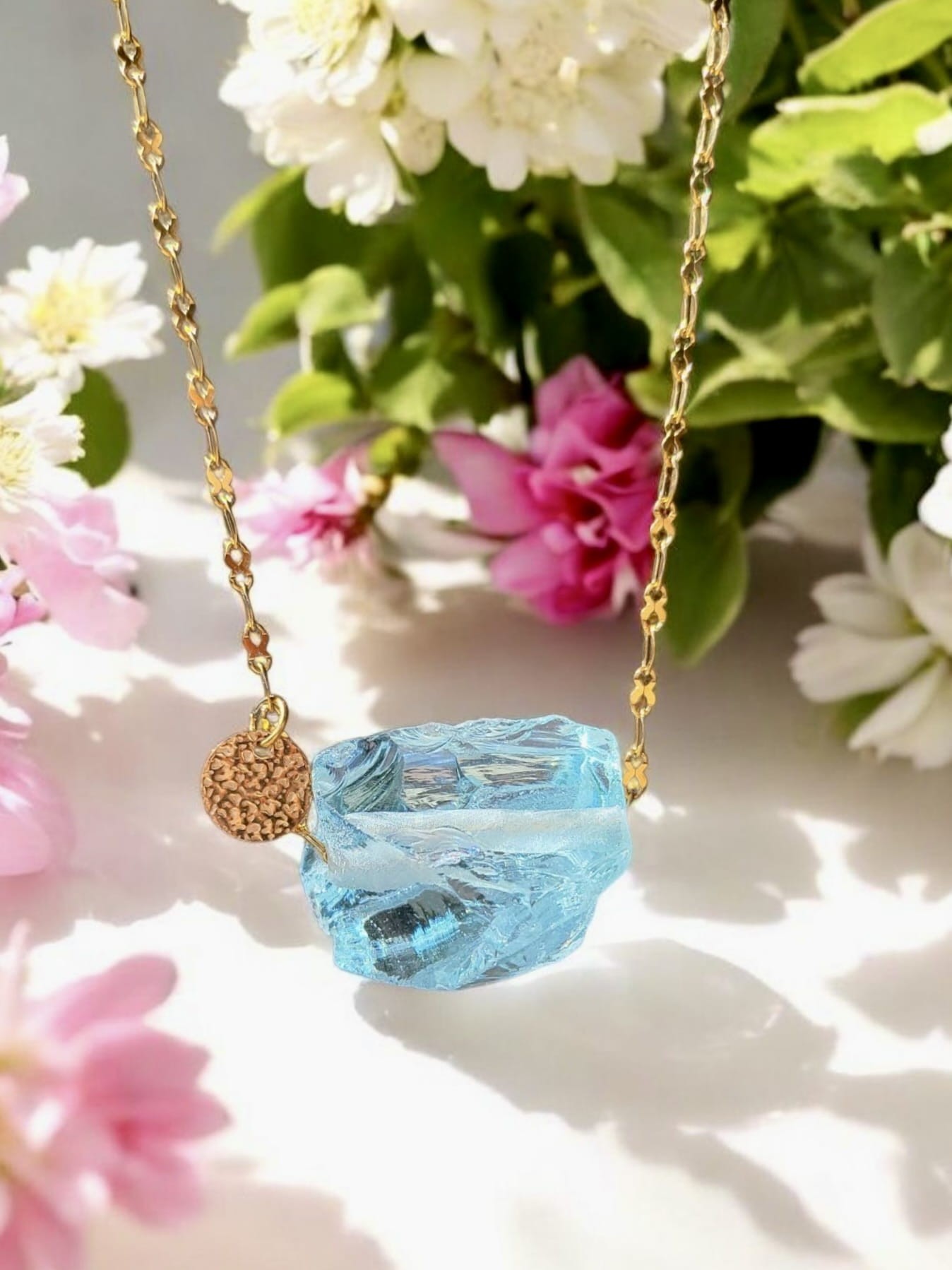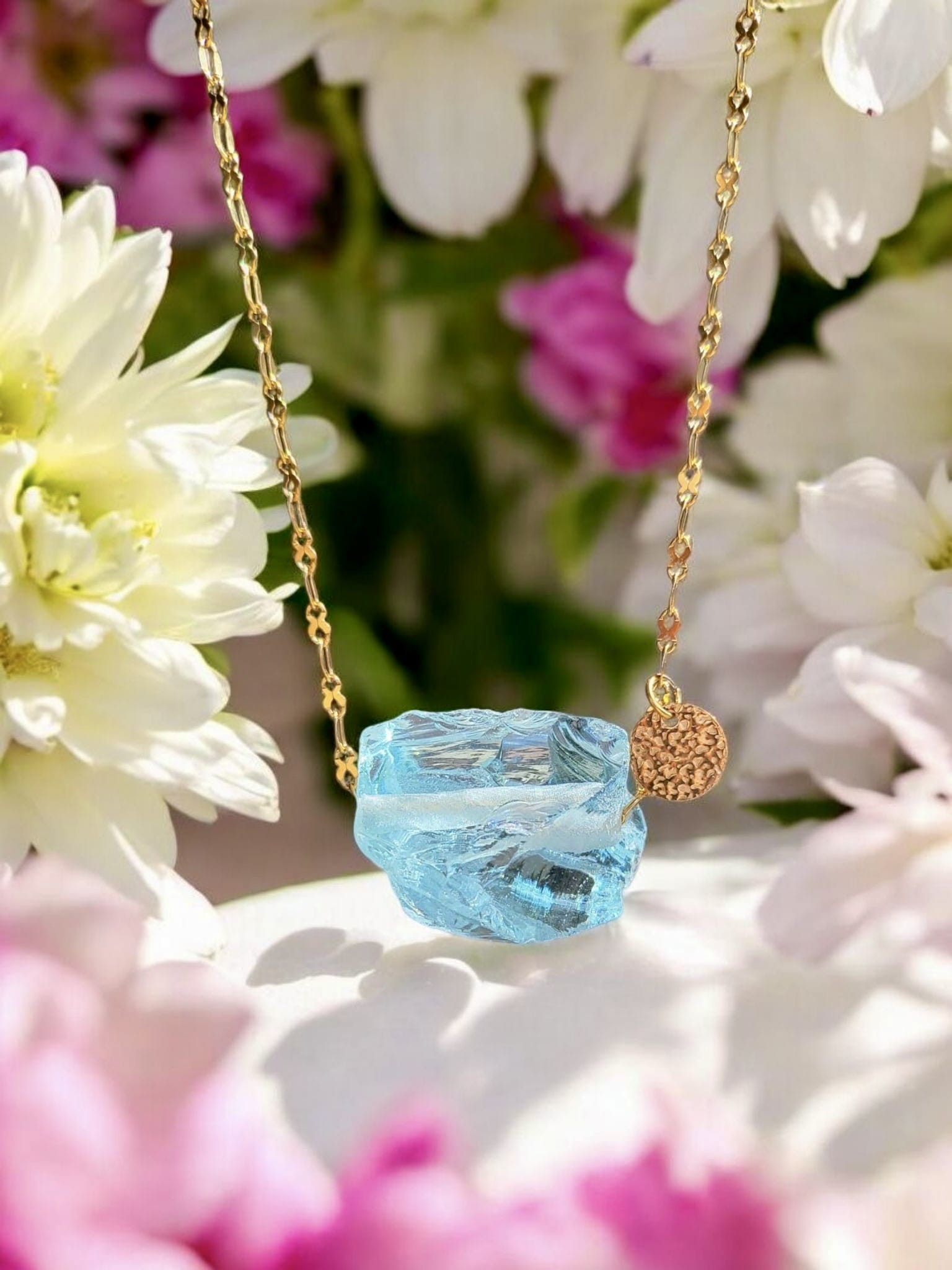Naszyjnik z surowym kwarcem aqua | Blue Crystal Soul | Ręcznie robiony | Limitowana edycja | Biżuteria z kamieniami naturalnymi