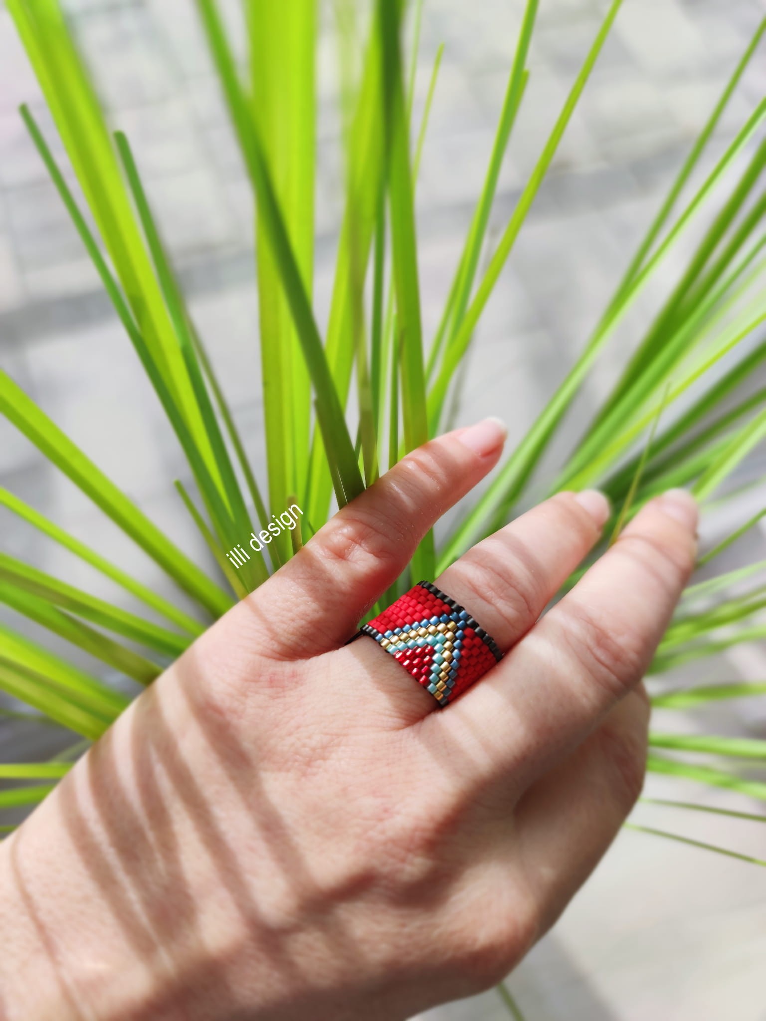 Pierścionek tkany czerwony Moc