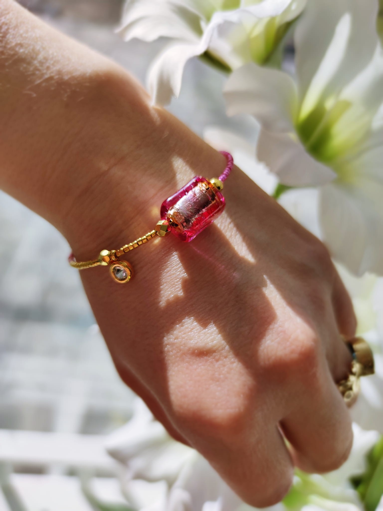 Edycja Limitowana. Osobliwe, subtelne, z klasą. Komplet bransoletek z szklanych koralików, pozłacanych prawdziwym 24 k złotem.