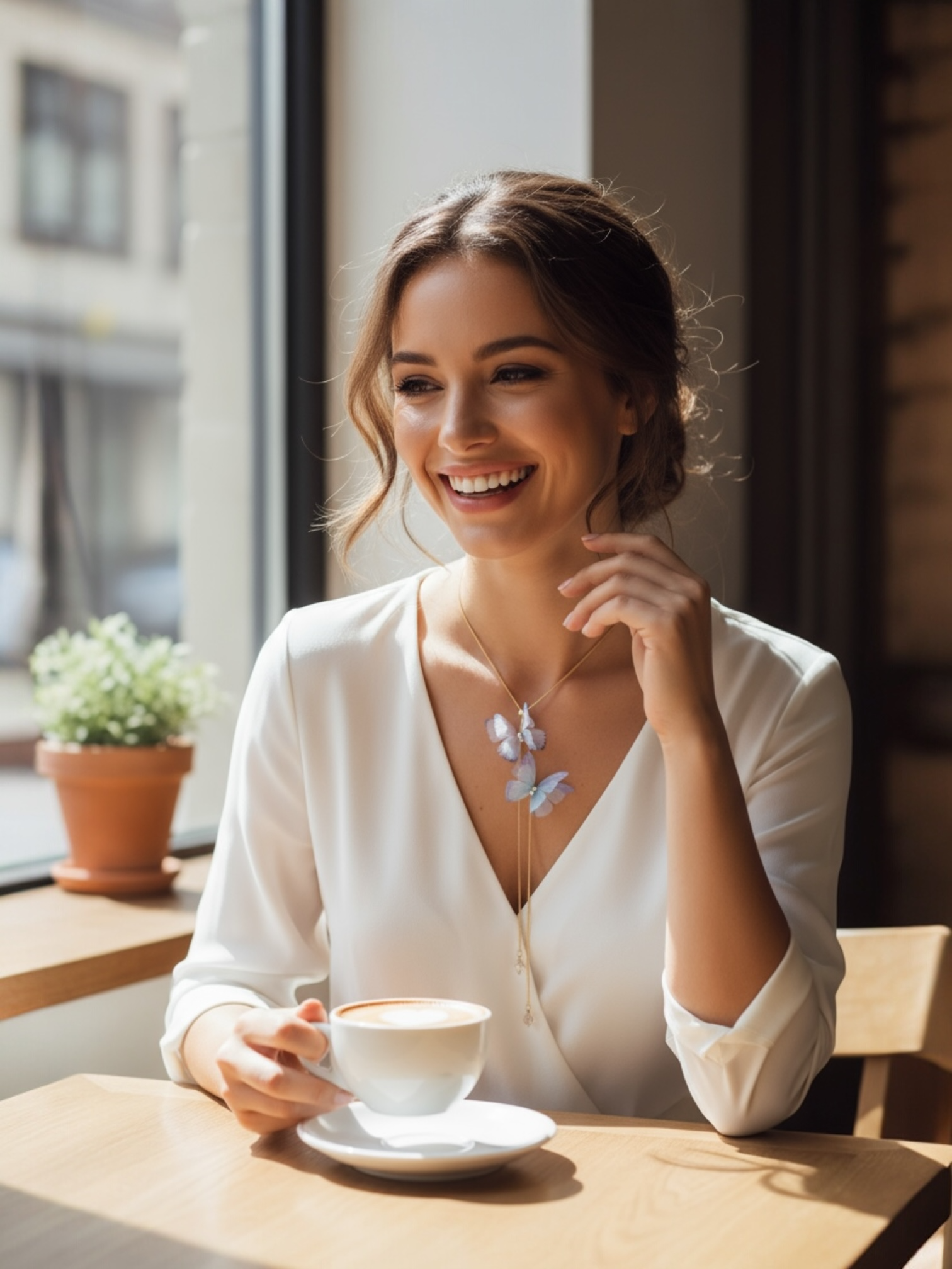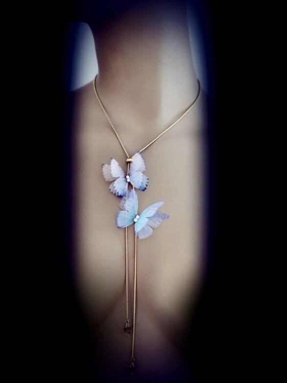 Oto biżuteria, która sprawi, że każdy Twój ruch nabierze lekkości i gracji. Ten ręcznie wykonany, długi naszyjnik ozdobiony został pastelowymi motylami 3D z delikatnej organzy, których skrzydła subtelnie poruszają się niczym prawdziwe – tworząc zmysłowy i niepowtarzalny efekt.